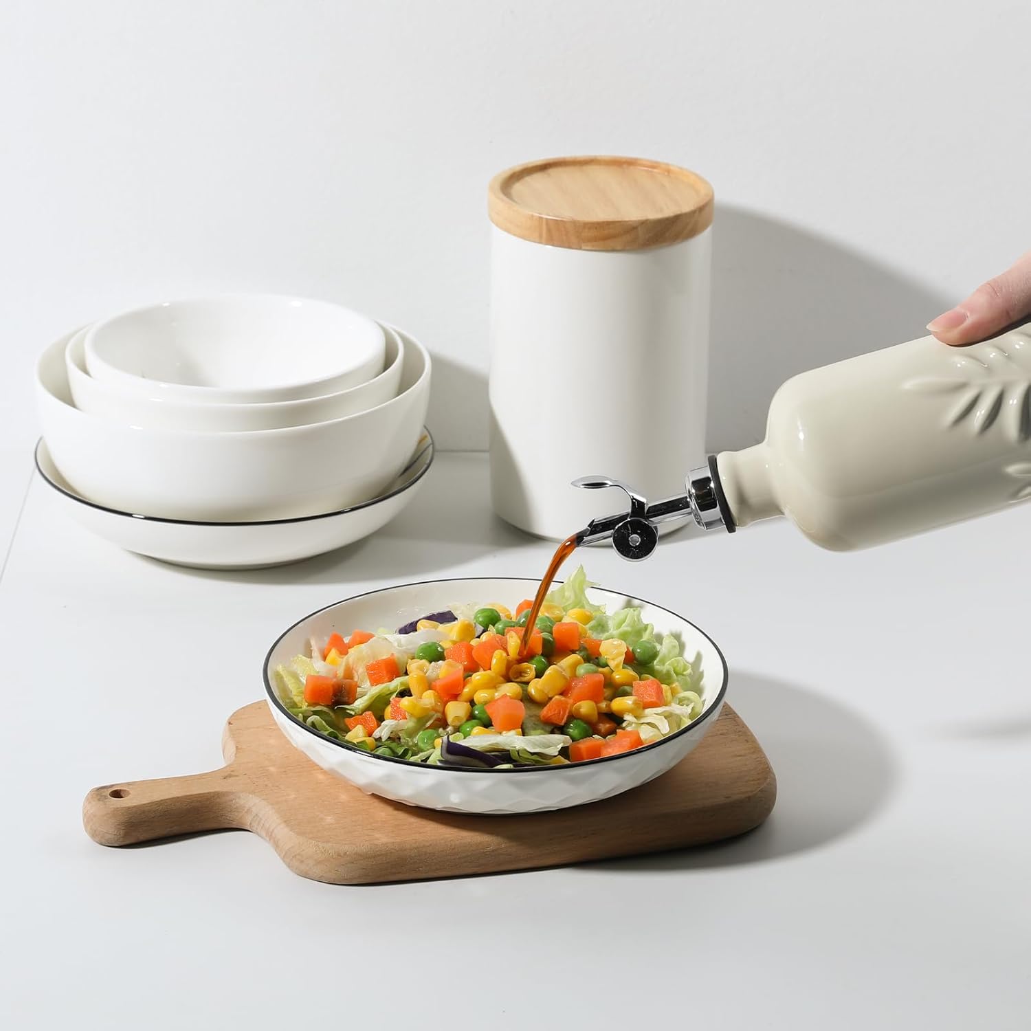 - Versatile for Kitchen & Practical- Ideal for storing and dispensing olive oil, vinegar, syrups, and more. Its 18 oz (530 ml) size is perfect for home kitchens, restaurants, cafes, or as a stylish gift. Durable, high-temperature-fired ceramic ensures lasting use.
