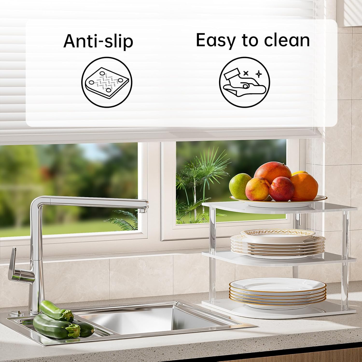 - SAVE SPACE AND TIME: Unique corners make full use of cabinet and countertop space, curved edge guards prevent dishes from scratching. Multi-layer design saves cabinet space and makes it easier to reach, helping you create a more efficient access.