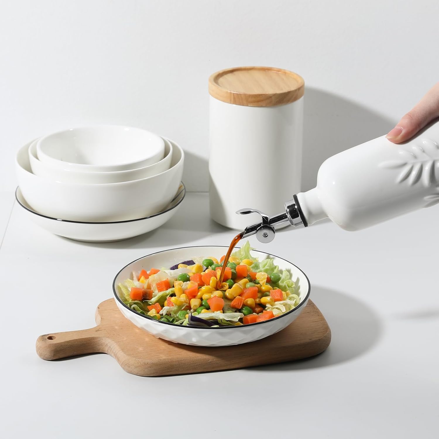 - Versatile for Kitchen & Practical- Ideal for storing and dispensing olive oil, vinegar, syrups, and more. Its 18 oz (530 ml) size is perfect for home kitchens, restaurants, cafes, or as a stylish gift. Durable, high-temperature-fired ceramic ensures lasting use.