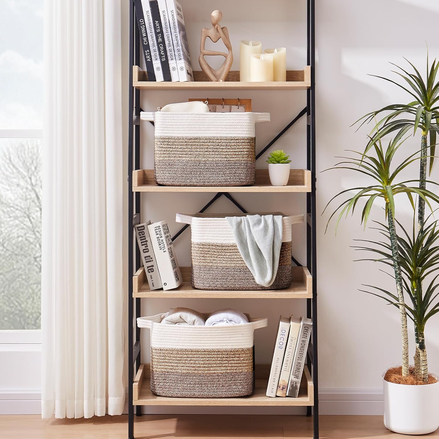 OIAHOMY Storage Basket, Woven Baskets for Storage, Cotton Rope Basket for toys,Towel Baskets for Bathroom - Pack of 3, Gradient Dark Brown