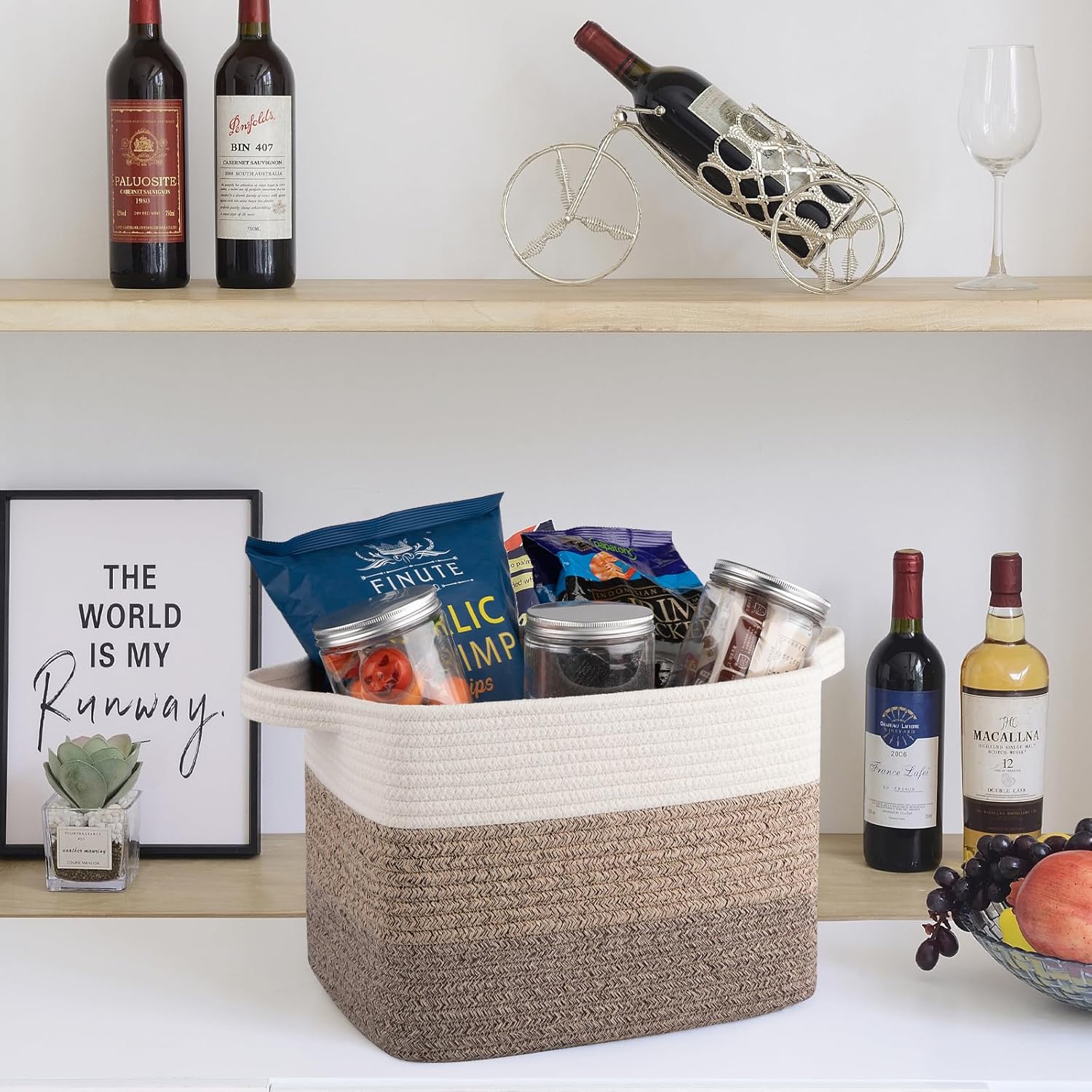 - Multifunctional Storage Basket:13"x9.85"x8.7"inch, large capacity, convenient to store more daily necessities.Our baskets are handmade with flexible material, which may result in slight size variations. It is a perfect storage basket for living room, bedroom, bathroom, baby room, utility room, playroom, classroom. Store household items (towels, toiletries, etc.),Office Supplies, fruit, snacks , books, baby diapers or toys. Use for dog toy storage organization to keep your living space tidy