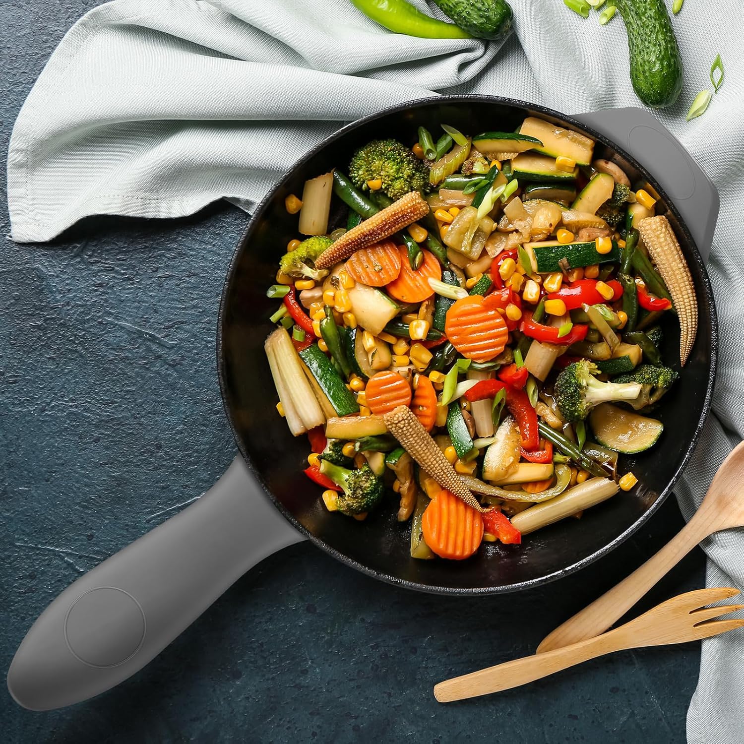 Domensi 4 Pcs Silicone Hot Handle Holder Set Cast Iron Skillet Handle Covers Heat Resistant Silicone Assist Handle Holder for Frying Pans Cast Iron Skillet Griddles Cookware(Grey)