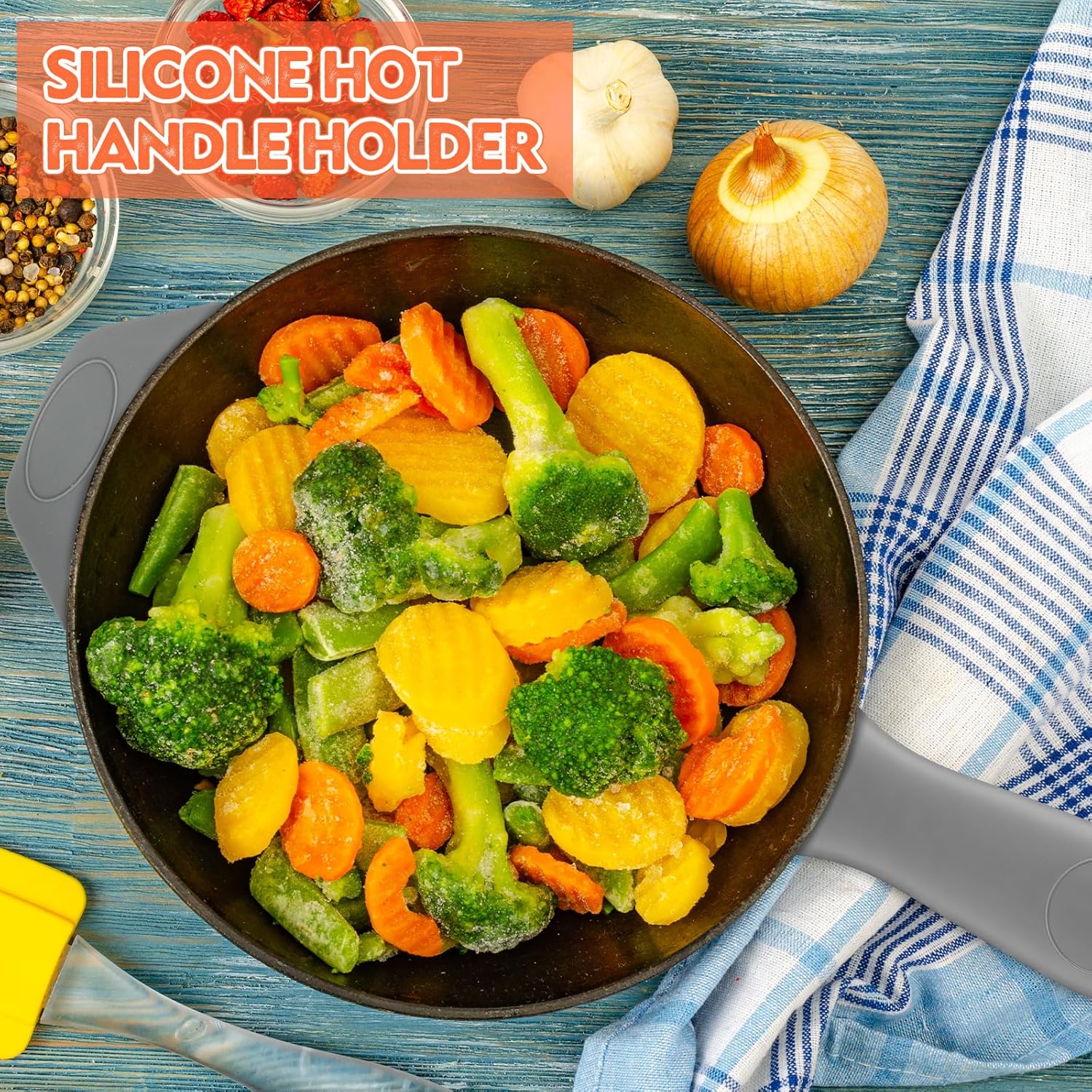 - Anti Slip Design: the silicone pot handle cover has a special anti slip texture design and silicone ribs inside, which can fit your cast iron skillet tightly to prevent it from falling off and is safer to use