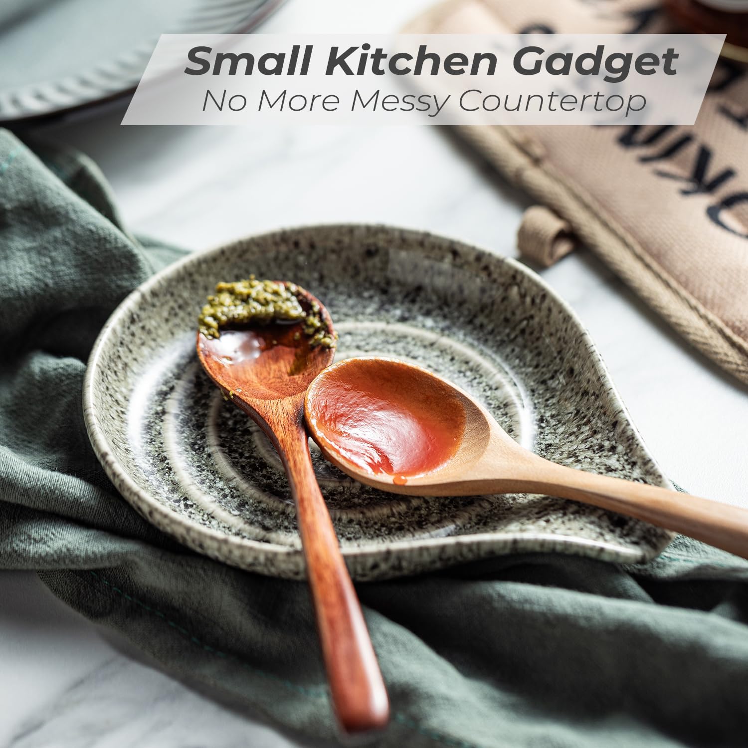 LAUCHUH Spoon Rest for Stove Top, 5 inch Ceramic Spoon Holder for Kitchen Countertop Large Spatula Holder for Ladle, Spoons or Tong, Farmhouse Decor, Special Gray