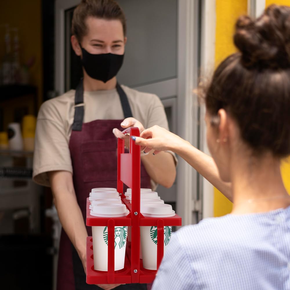 Bodaon 8 Cup Drink Carrier with Handle, Plastic Cup Carriers for Drinks, Drink Holder for Car, GrubHub/Eats Doordash Accessories, Portable Foldable Reusable Mobile, Use for Food Delivery Bag, Red