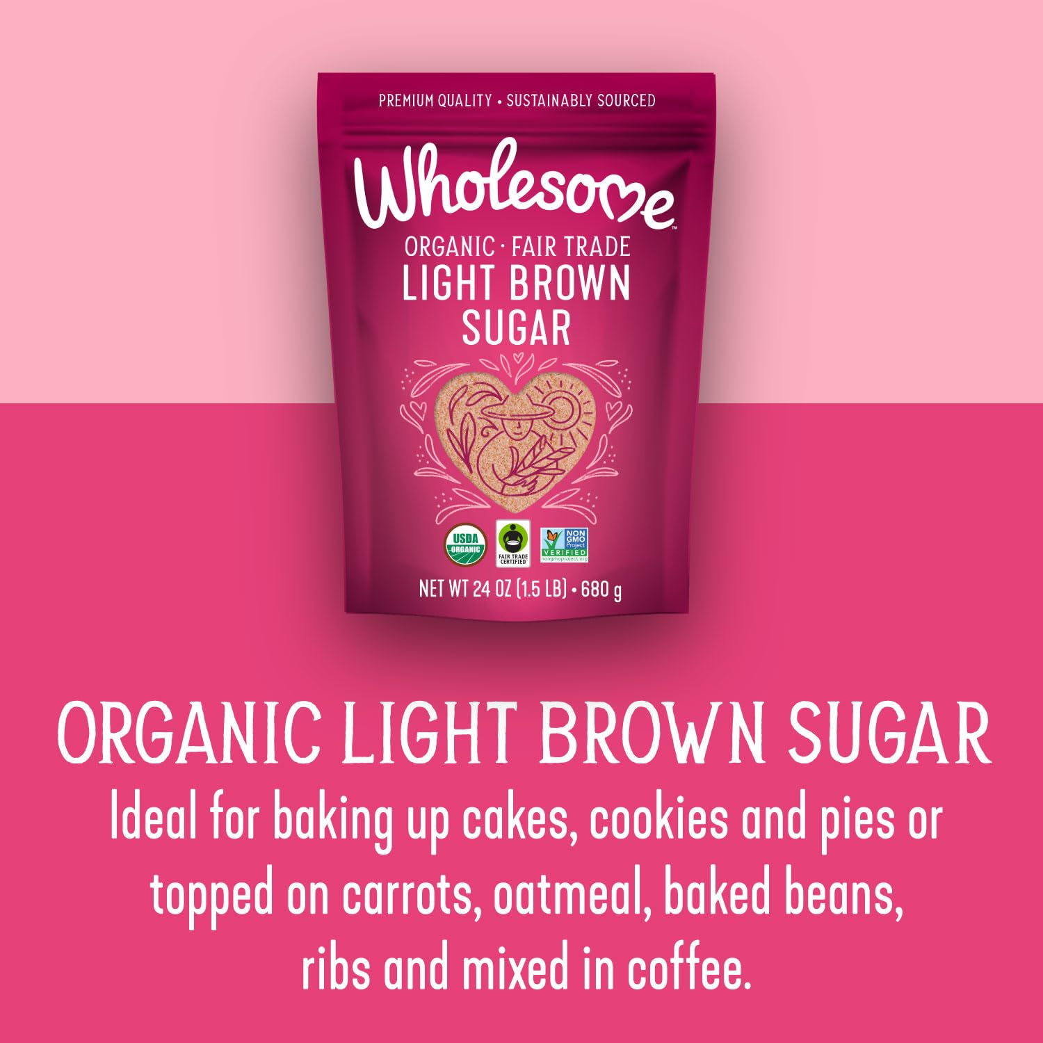 - SOURCING: Wholesome Organic Light Brown Sugar is made from sugarcane sustainably grown and harvested in Central and South America.