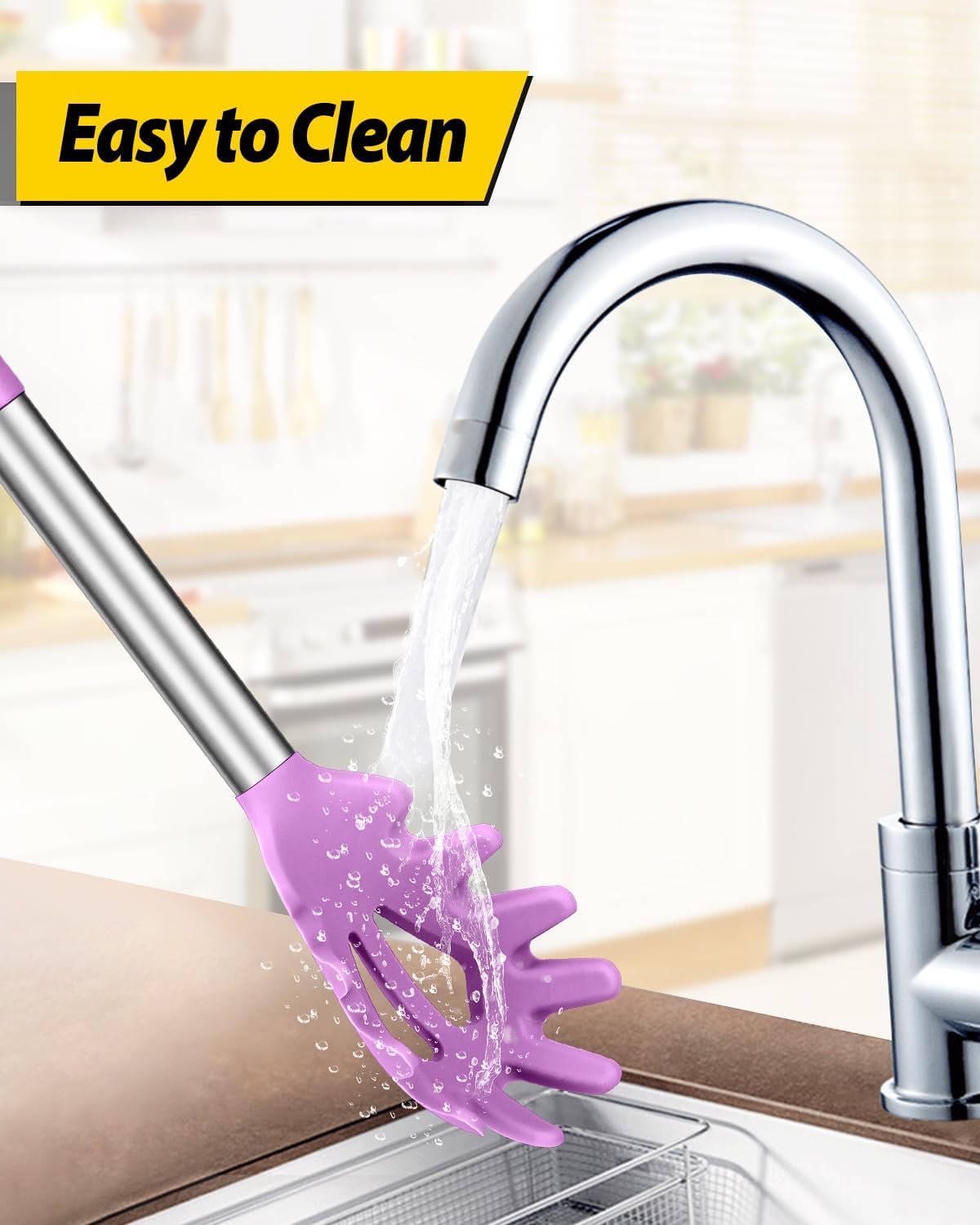- Thoughtful Design : The good-quality 18/8 stainless steel keeps you away from the trouble of kitchen utensils rusting or breaking; This anti-scald silicone handle is not easy to conduct heat and is more comfortable to hold than traditional utensils