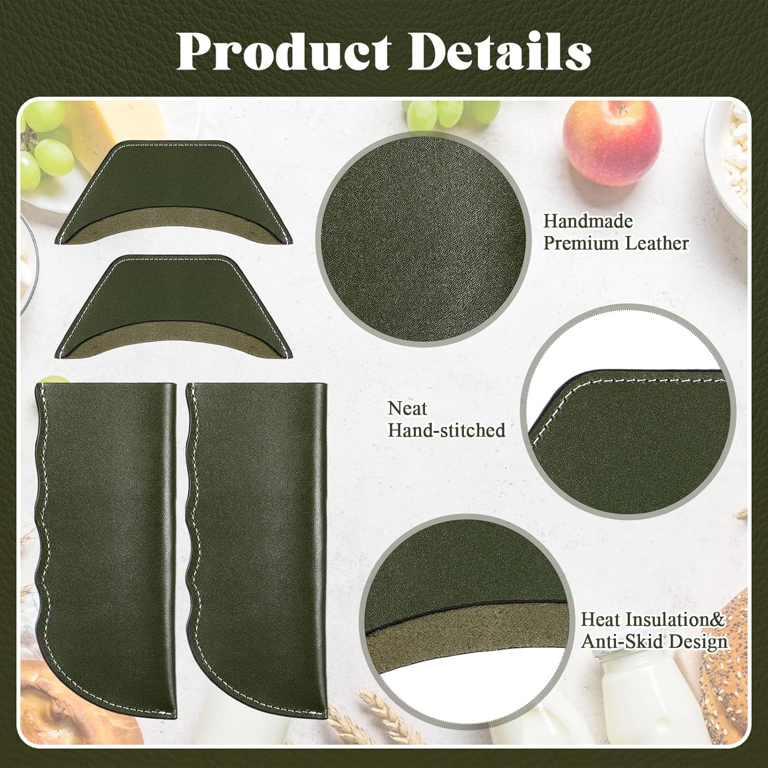 Baderke 4 Pcs Leather Cast Iron Handle Cover Handmade Leather Heat Resistant Skillet Handle Set Pot Holder for Hot Frying Pans, Pots(Army Green)