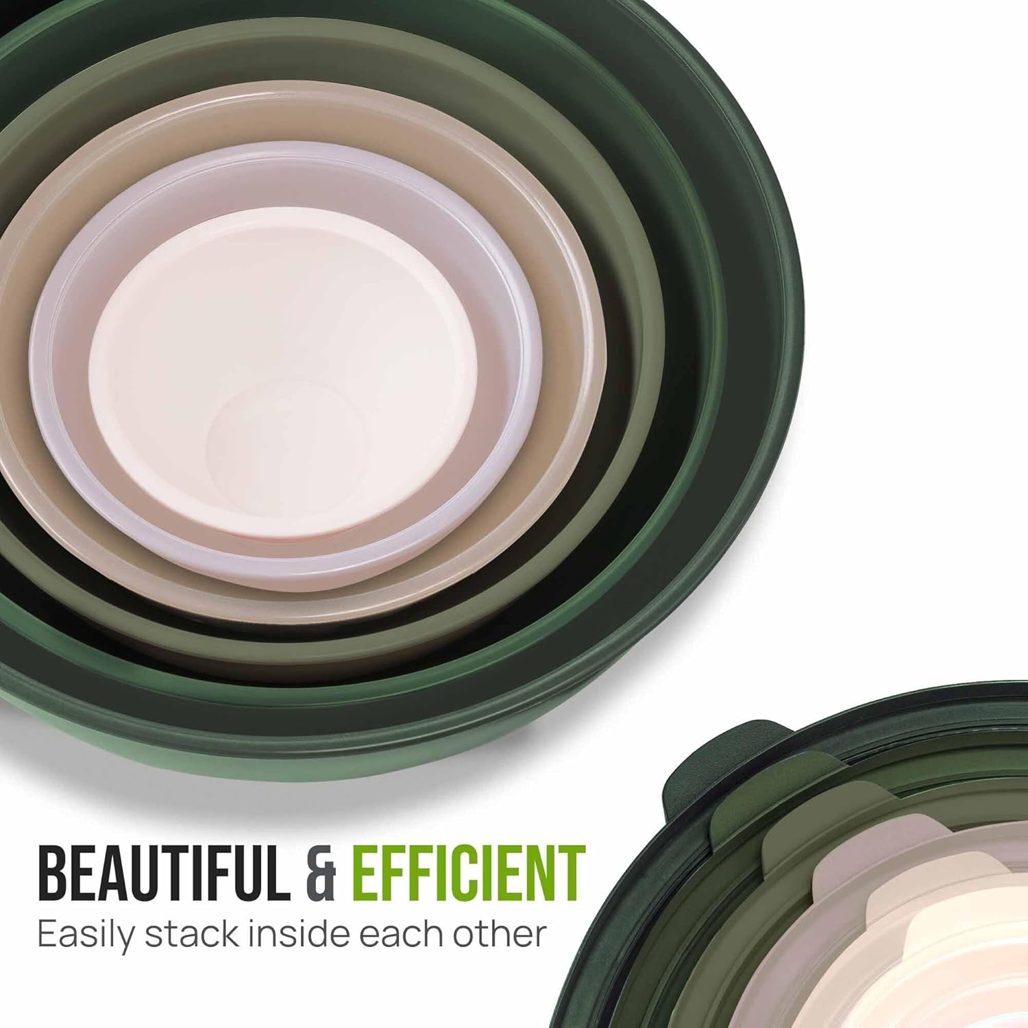 Zulay Kitchen 12 Piece Plastic Mixing Bowls with Leak-Proof Lids Set - Microwave and Freezer Safe Kitchen Mixing Bowls for Preparing, Serving and Storing - Large Nesting Bowls (Forest Ombre)