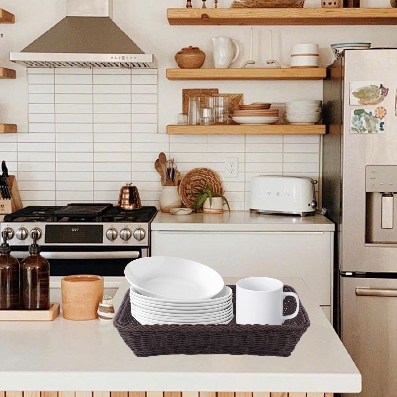 6 Pack 16 Inch Deep Coffee Wicker Bread Basket, Handmade Woven Organizer, Rectangular Fruit Baskets, Snack Basket Food Serving Baskets for Dining Table, Candies, Crackers, Fruit, Vegetables