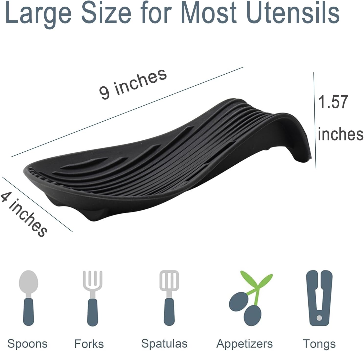 - 【Extra-Large Size for All Kitchen Tools】Measuring 9” x 4”, the spacious curved design accommodates long handles of spoons, spatulas, ladles, and more. Keep countertops tidy while cooking with multiple utensils – no more slipping or spills!
