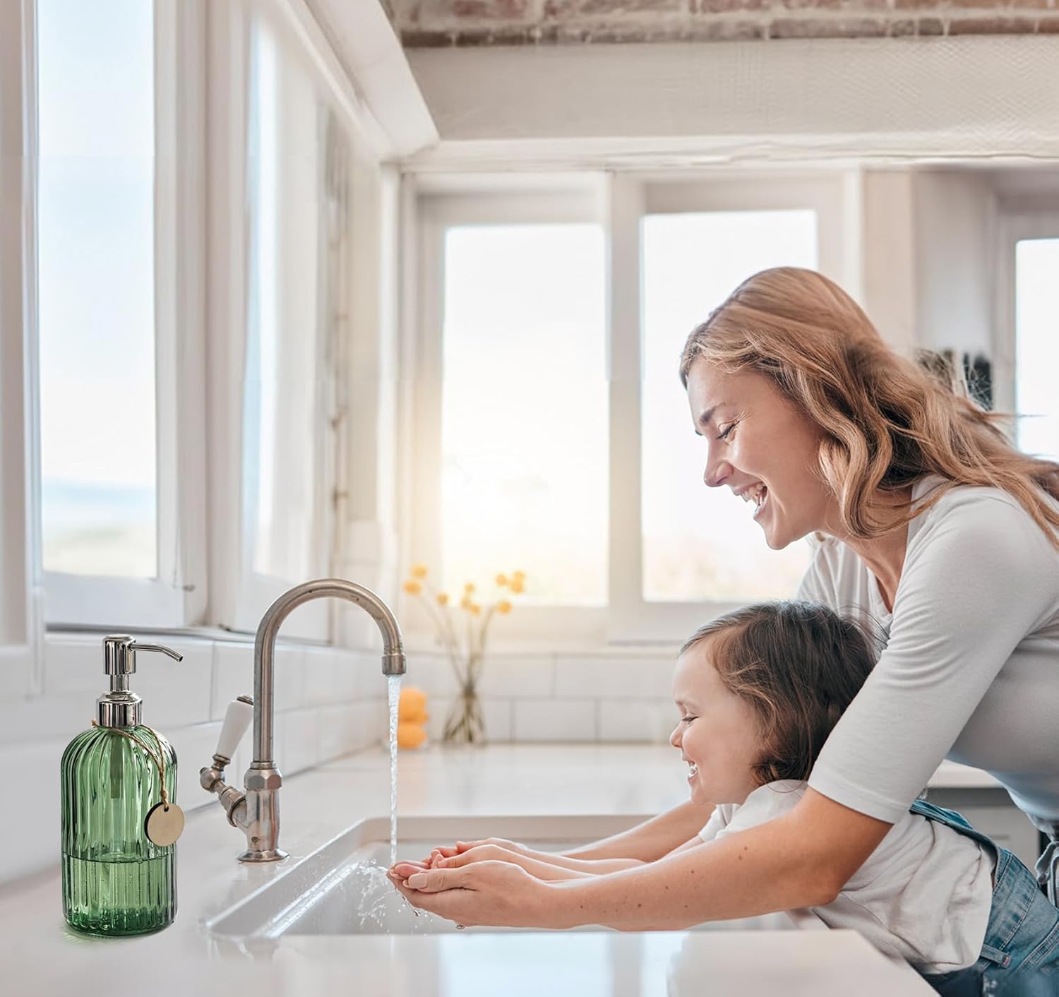 - REFLIIABLE AND FUNCTIONAL: Make a Sustainable Choice with This Bathroom Soap Dispenser. The Premium Glass Design Reduces the Need for Disposable Plastic While Keeping Your Kitchen Organized.