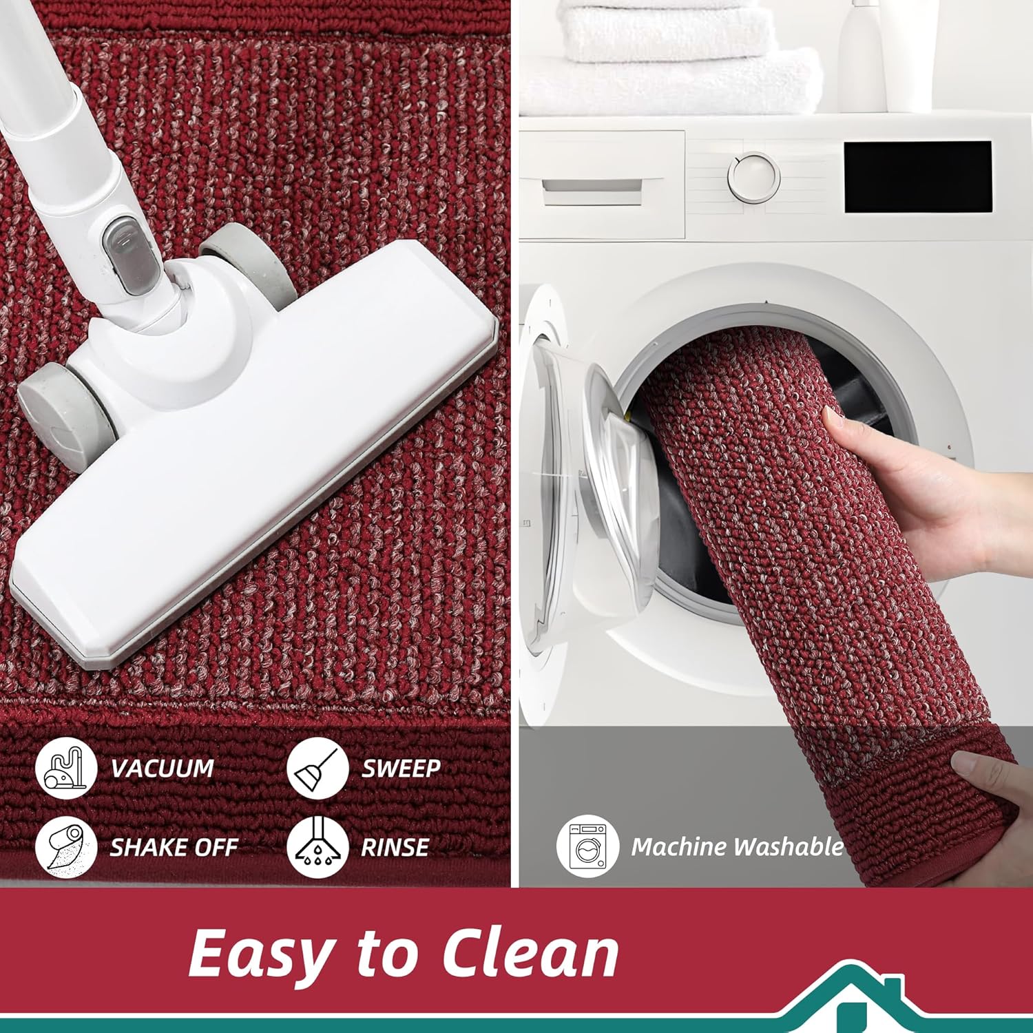 BEQHAUSE Kitchen Runner Rugs 24"x60", Kitchen Rugs Non-Slip Kitchen Mats for Floor, Absorbent and Stain Resistant Kitchen Mats, Machine Washable Rug for Kitchen, Hallway, Laundry & Sink, Red