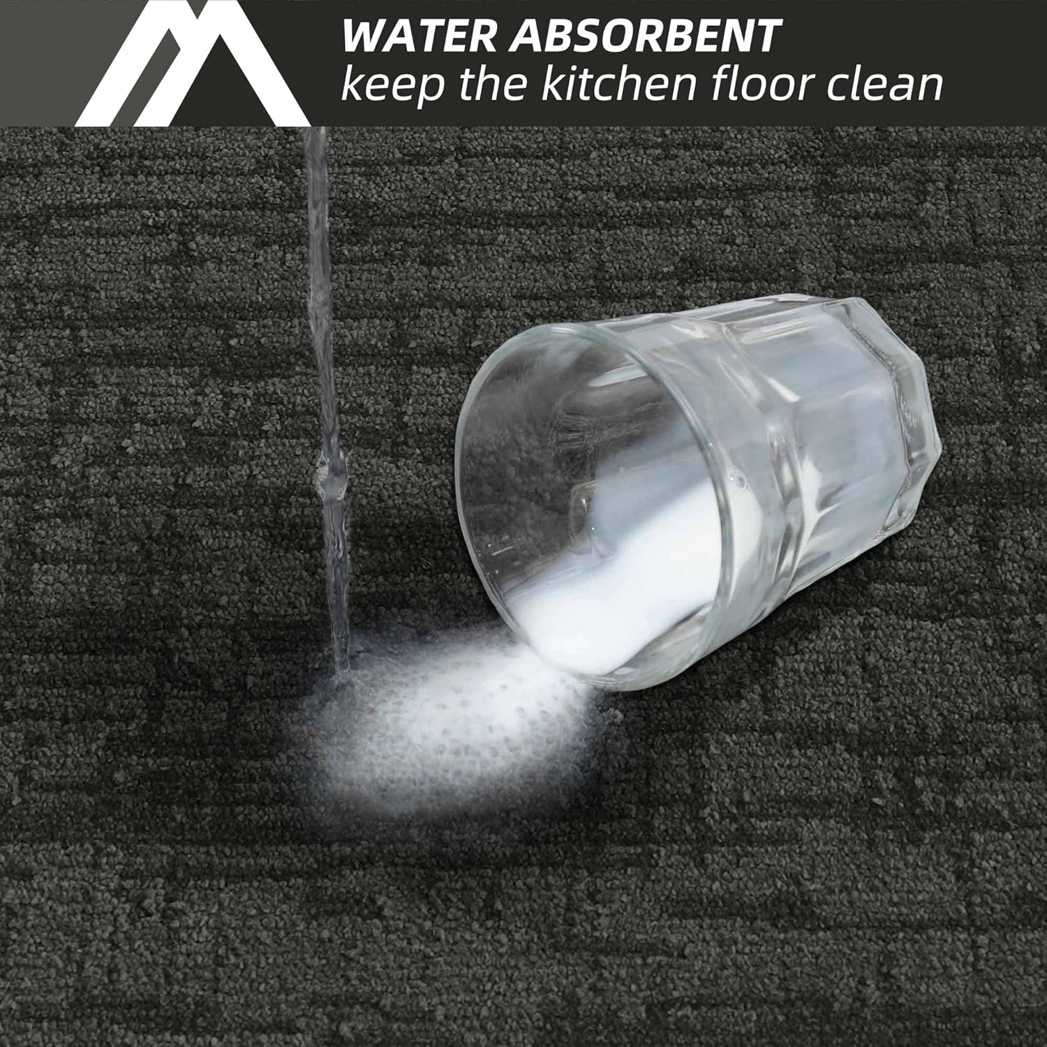 - Comfort,Stain Resistance and Absorbent:Soft kitchen floor mat is crafted from wear-resisting Polyetser fibers with three layers technology,providing a comfortable feeling.The tight sewing and dense yarns ensure exceptional durability,superb absorbency,stain resistance and colorfastness.Protect your floor from oil,moisture,sauces or food particles