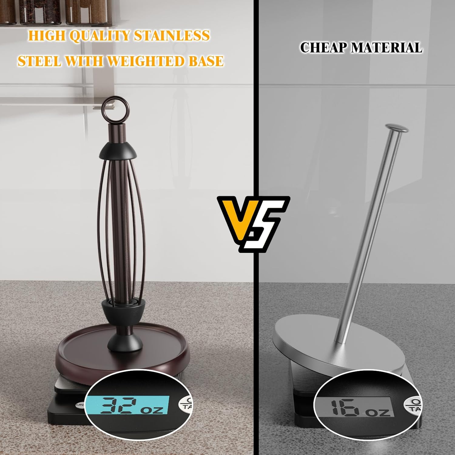 Oil Rubbed Bronze Paper Towel Holder Countertop, Bronze Kitchen Accessories Decor, Stainless Steel, Weighted Base, One Hand Tear Paper Towel Stand with Ratchet System for Kitchen Farmhouse Essentials