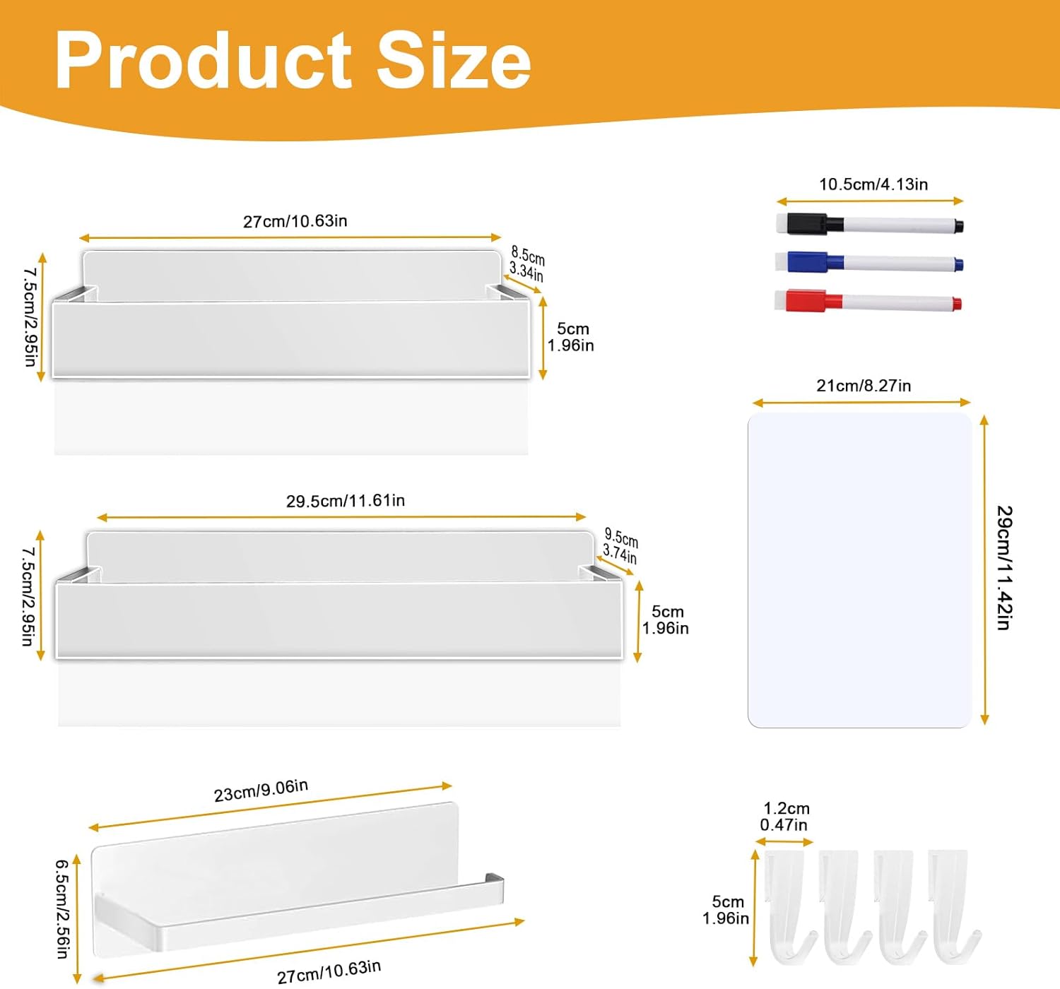 4 Pack Magnetic Spice Rack for Refrigerator,Metal Magnetic Shelf White with Paper Towel Holder,Whiteboard,3 Markers,4 Hooks,Space Saving for Home,Kitchen