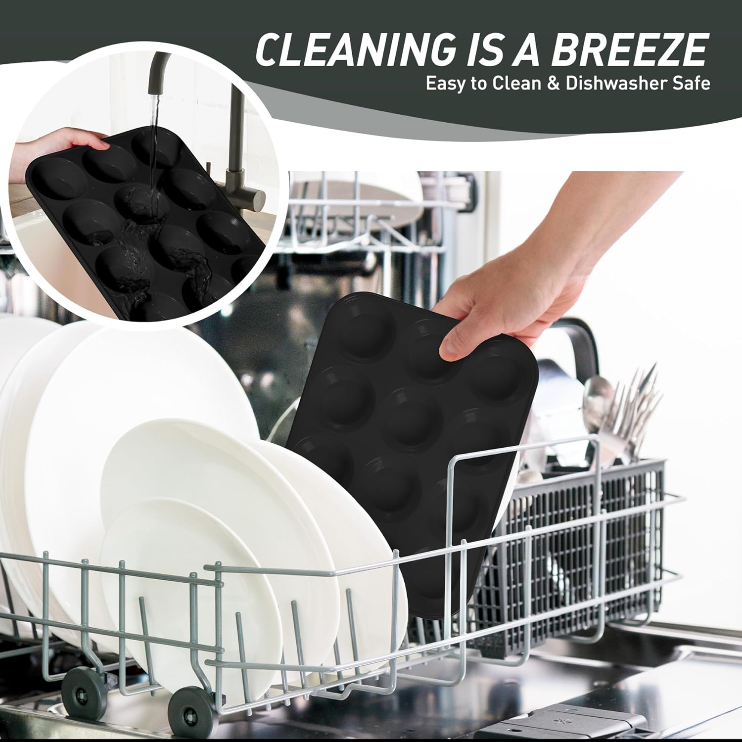 - Effortless Release Every Time: The baking cupcake muffin pans features a smooth, nonstick surface that releases baked goods with just a gentle push from the bottom - no messy greasing or stubborn sticking. After baking, simply place the entire baking cupcake muffin pans in the dishwasher for effortless cleaning. Compared to traditional metal baking cupcake muffin pans, our high-quality silicone material resists oil absorption, reducing residue buildup by 85% for quicker, simpler cleanup.