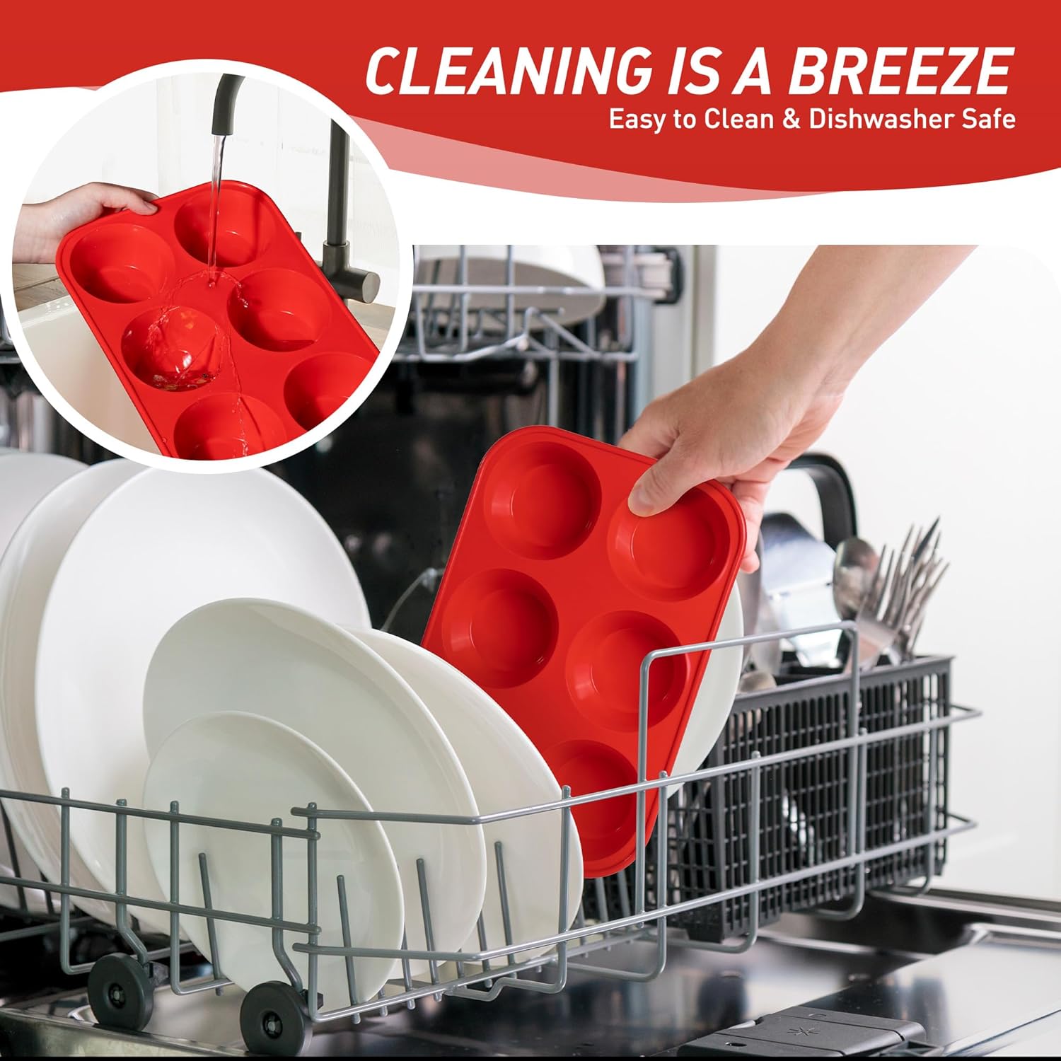 - Effortless Release Every Time: The baking cupcake muffin pans features a smooth, nonstick surface that releases baked goods with just a gentle push from the bottom - no messy greasing or stubborn sticking. After baking, simply place the entire baking cupcake muffin pans in the dishwasher for effortless cleaning. Compared to traditional metal baking cupcake muffin pans, our high-quality silicone material resists oil absorption, reducing residue buildup by 85% for quicker, simpler cleanup.