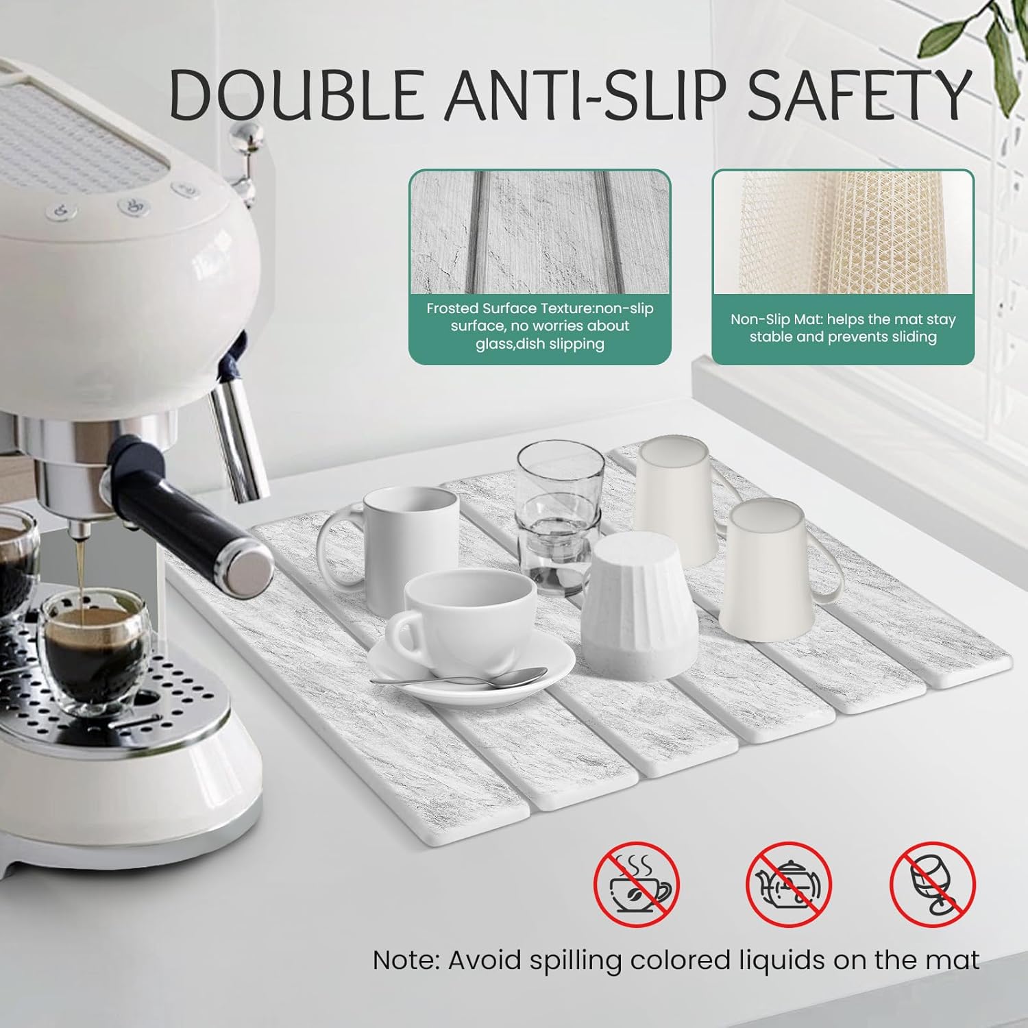 Stone Dish Drying Mat Collapsible Diatomaceous Earth Absorbent Mat Quick Dish Drying Pad Dish Rack Pad Match Any Counter to Multiple Usage for Kitchen,Bathroom