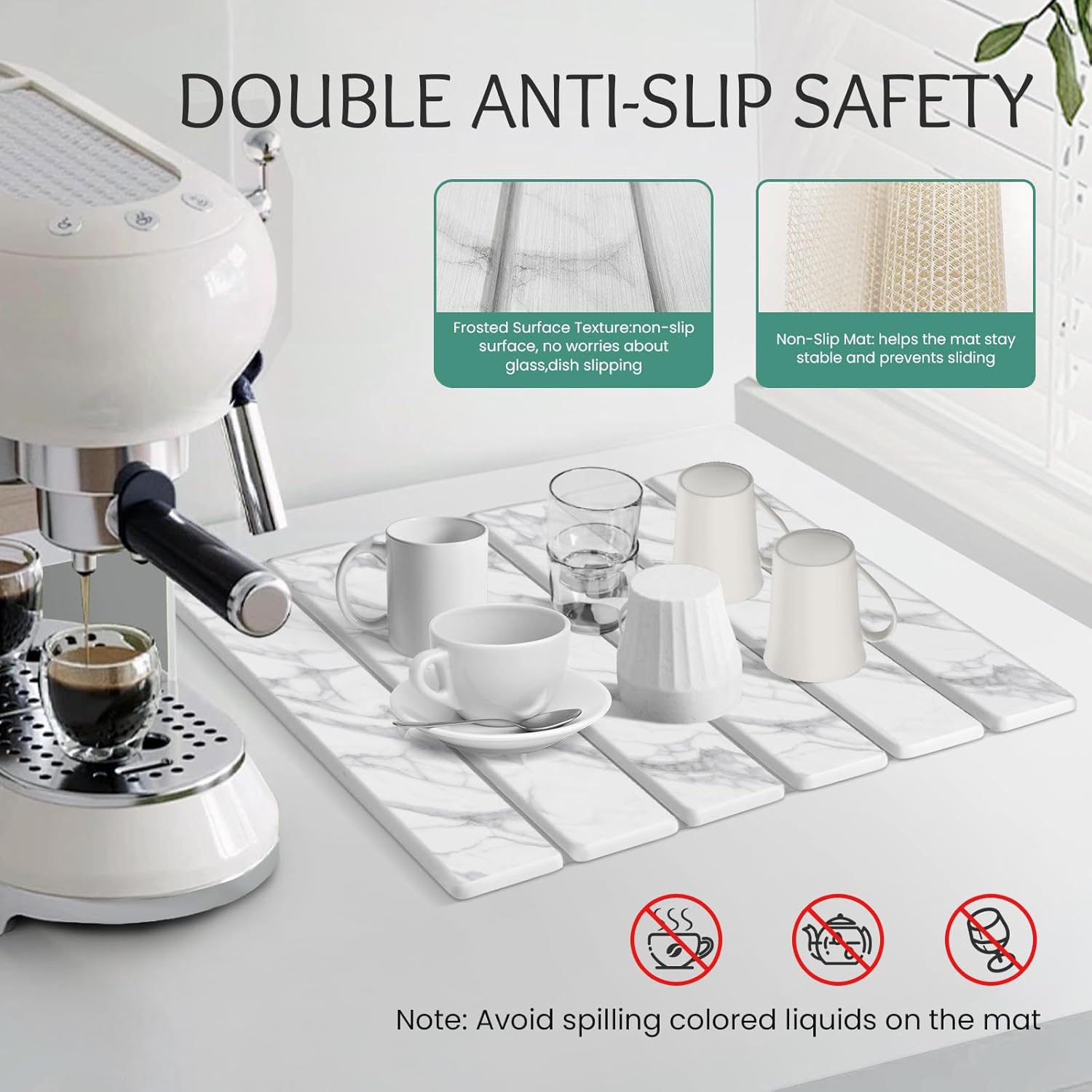 Stone Dish Drying Mat Collapsible Diatomaceous Earth Absorbent Mat Quick Dish Drying Pad Dish Rack Pad Match Any Counter to Multiple Usage for Kitchen,Bathroom
