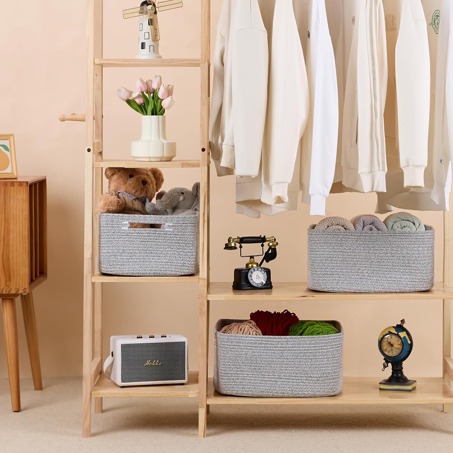 - [ Soft & Durable ]: Hand-stitched from high-quality natural cotton rope, our baskets are soft, durable, and baby-friendly, with no odor or sharp edges. Great for nurseries and closet organization