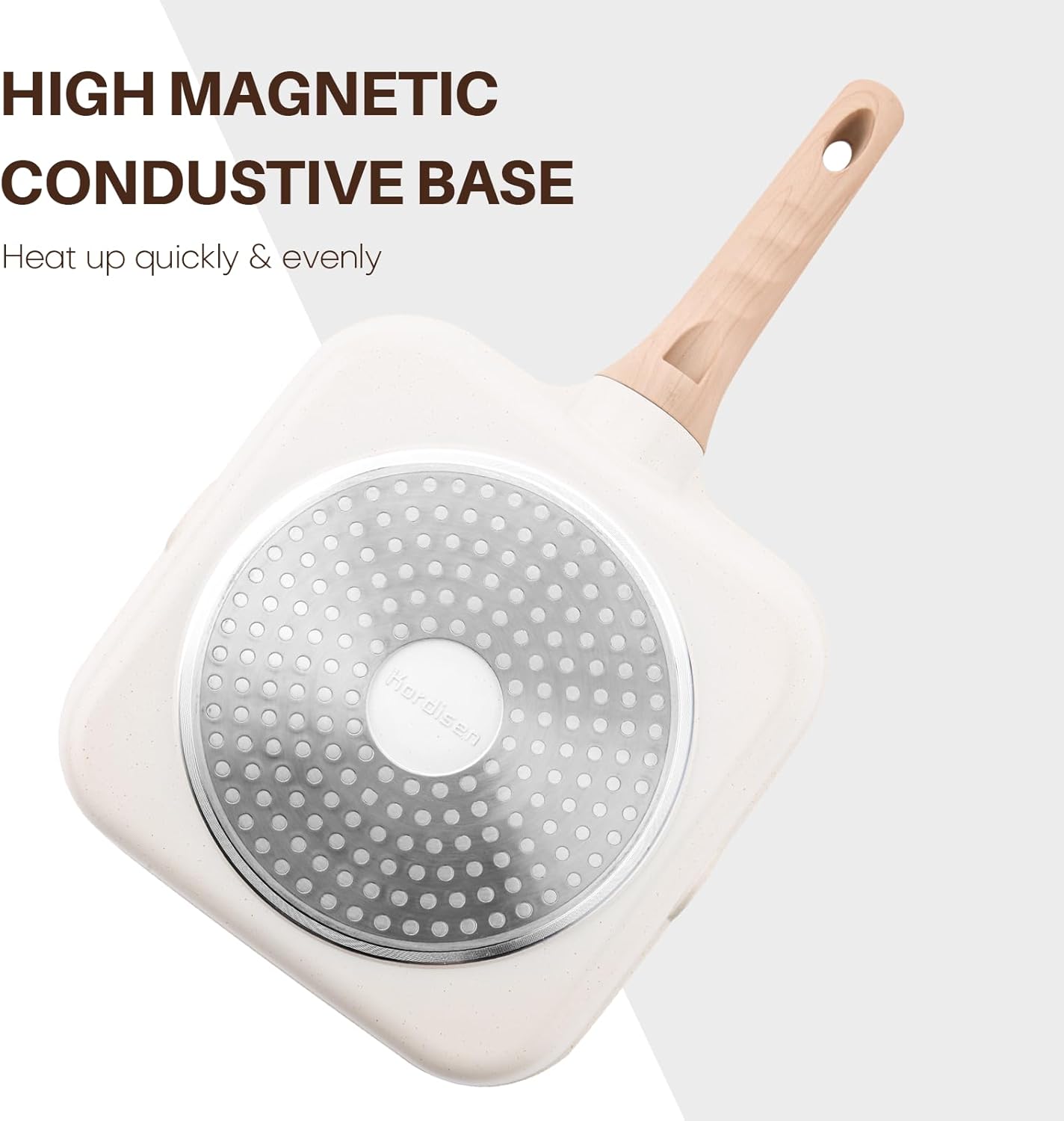 - 【Even Heating】: High magnetic conductive stainless steel base ensures even and rapid heat distribution; helps achieve consistent cooking results across the pan