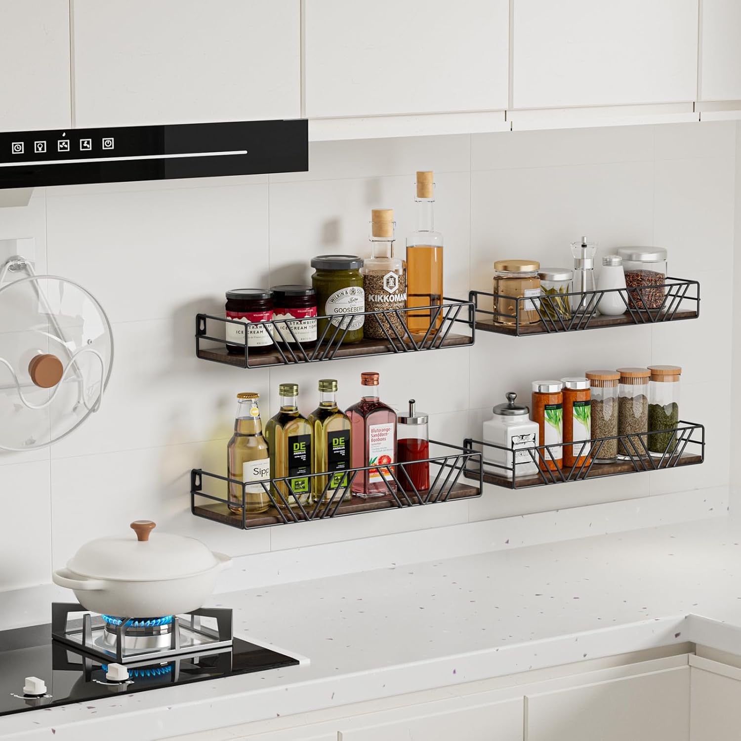 - Versatile Shelving: This wall shelf Use it anywhere! In the kitchen, it’s a spice rack; in the bathroom, it adds storage above the toilet for toiletries; in the living room, it becomes a display shelf for plants, trophies, collectibles, books, or photos. Adapts to any room’s needs!