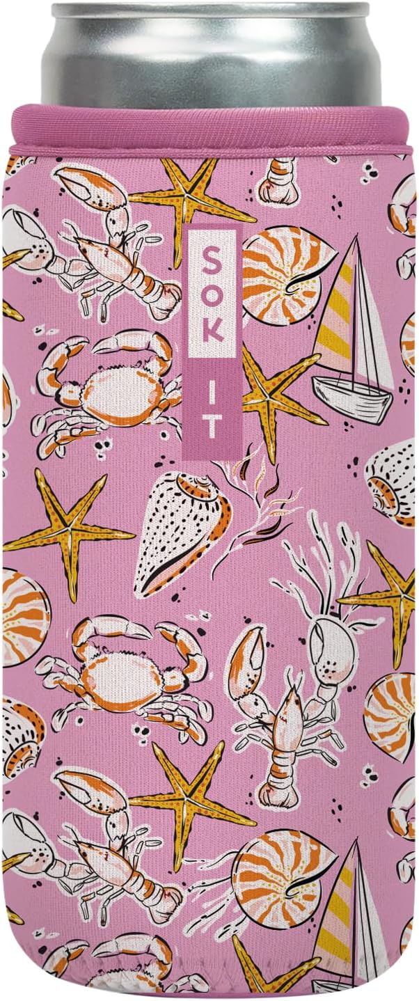 Sok It CanSok Sleeve for Beer & Soda Insulated Neoprene Cover (Tidal Treasures, 12oz Slim Can Sleeve)