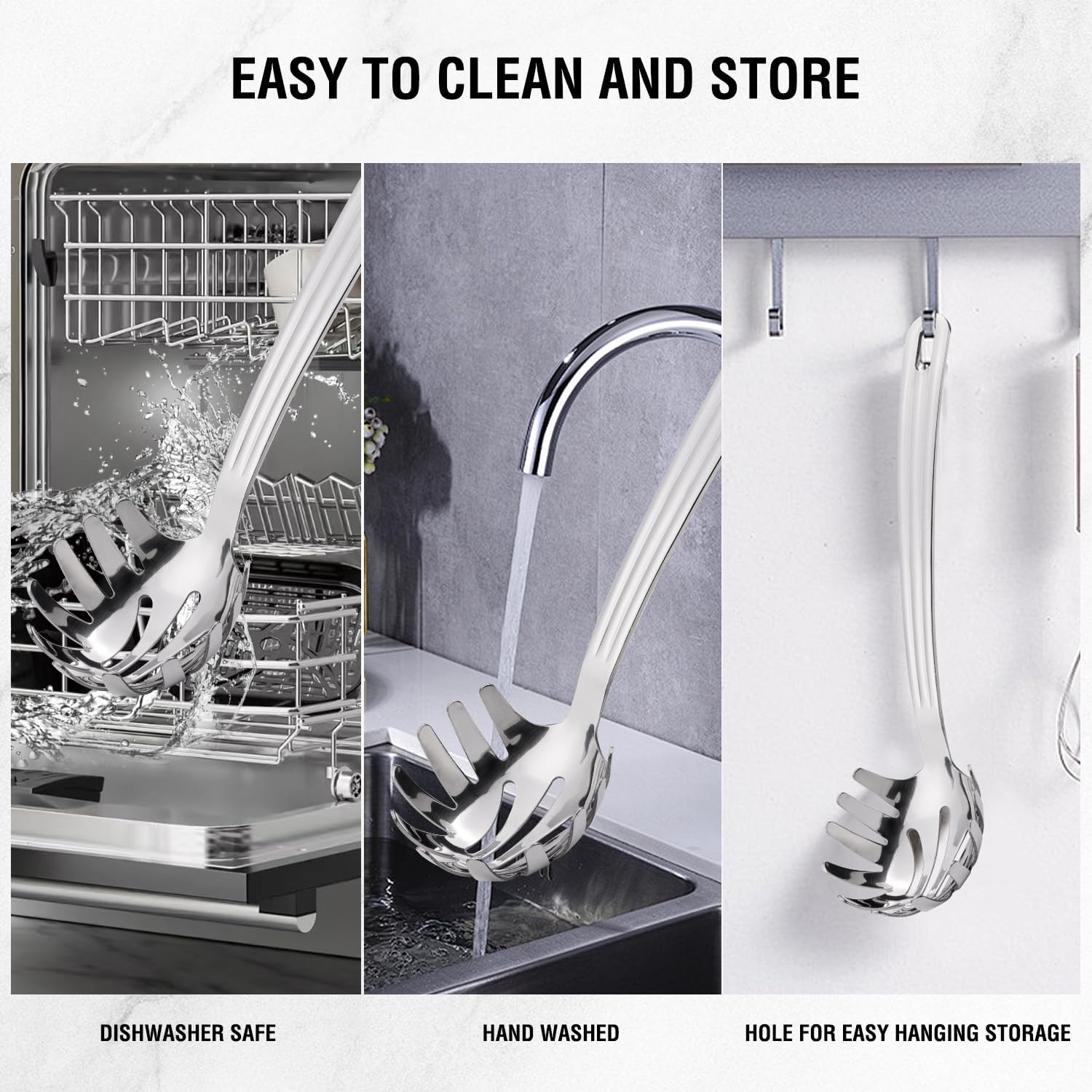 - Easy Clean - This stainless steel spaghetti fork is simple to clean and dishwasher-compatible. Avoid abrasive cleaners.