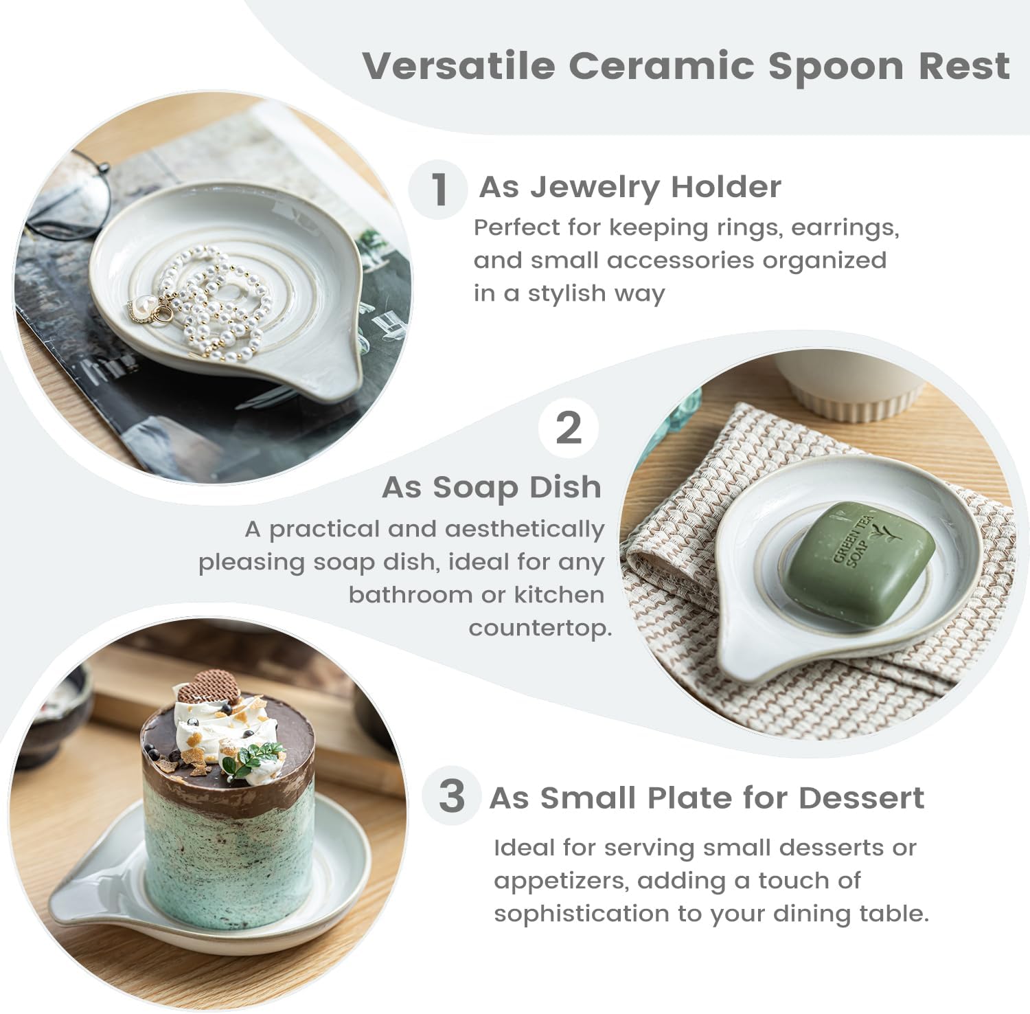 - Not Just A Spoon Rest: The ceramic spoon holder is 6.1" L and 5" W, which is suitable for ladle, coffee spoons, cooking spoons, spatula, tongs. It can also widely used as small saucer to hold small amount of Ketchup, wasabi, dessert, snack, appetizer or as a jewelry tray