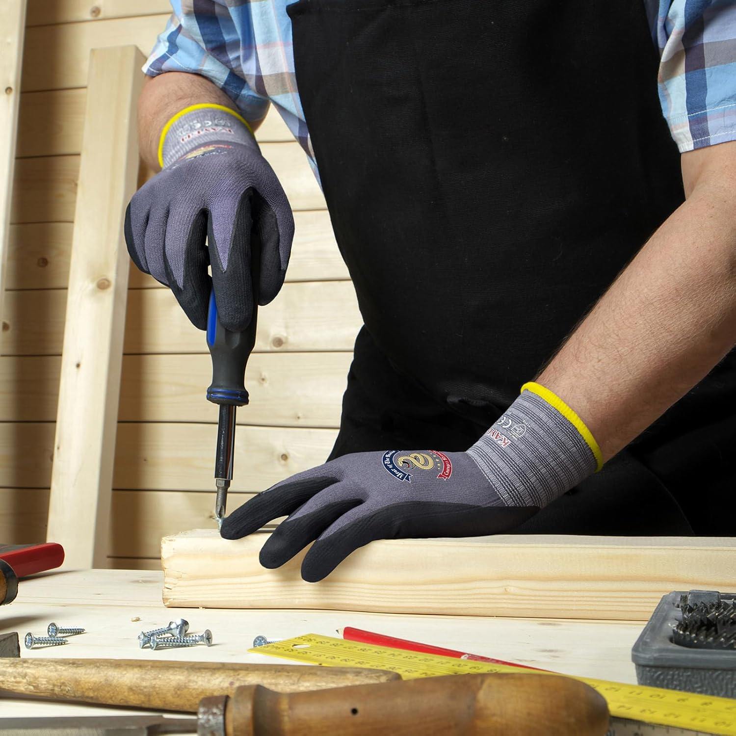 KAYGO Safety Work Gloves MicroFoam Nitrile Coated, 3 Pairs KG18NB,Seamless Knit Nylon Glove for Men and Women, Ideal for Automotive,Warehouse,Construction (M,Gray)