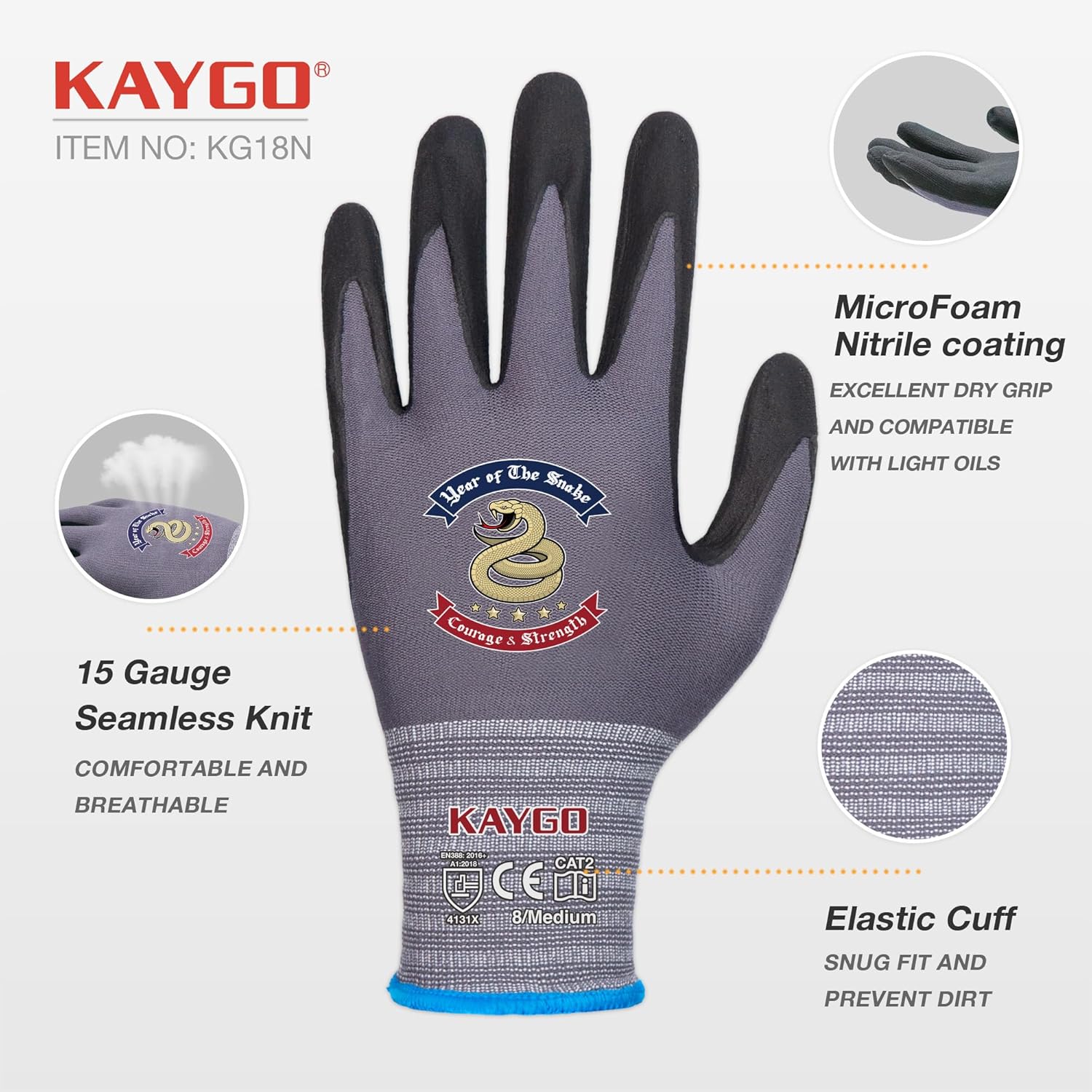 KAYGO Safety Work Gloves MicroFoam Nitrile Coated, 3 Pairs KG18NB,Seamless Knit Nylon Glove for Men and Women, Ideal for Automotive,Warehouse,Construction (L,Gray)