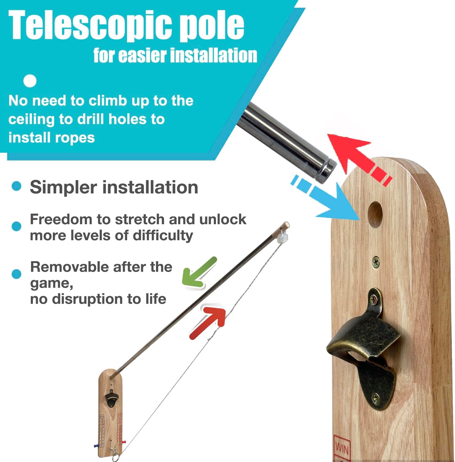 - Telescopic Rod Design- Forget the old-school setup. This upgraded version makes installation a breeze—no more tying strings to high ceilings. The built-in adjustable tension lock lets you easily fine-tune the rope length in seconds.