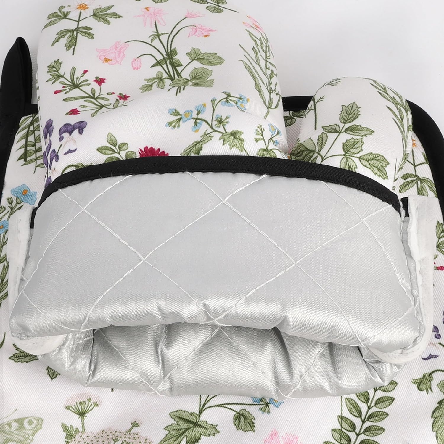 - Premium Material:Our kitchen pot holders and oven mitts are made of high quality polyester fiber, sturdy and durable, non-slip, which makes it easier for you to grip while cooking or moving dishes. Also, the floral oven mitts and pot holders are easy to clean, it is recommended to hand wash and naturally dry