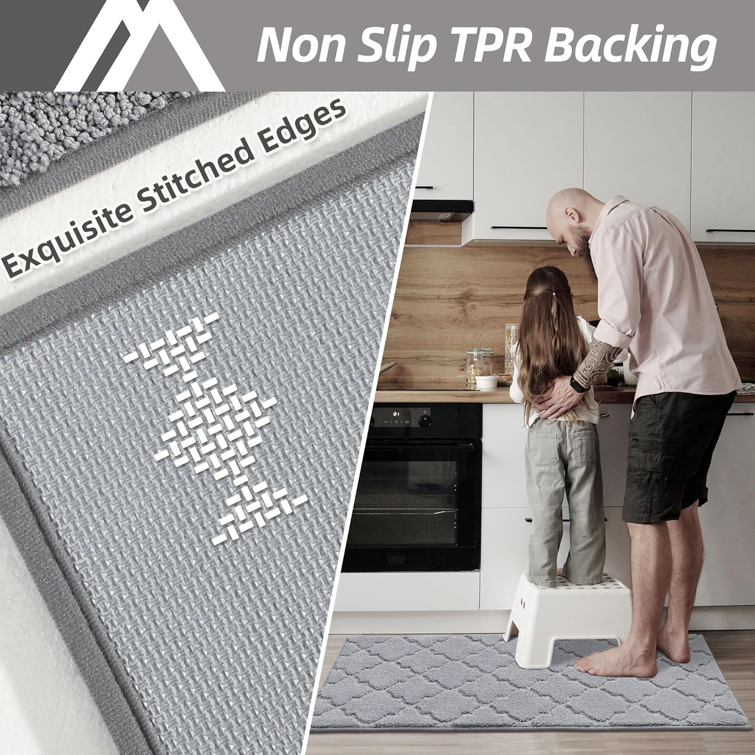 - NON-SLIP TPR BACKING: For enhanced safety, our rugs for kitchen feature a TPR anti-skid striped backing that ensures the mats stay firmly on your floor, minimizing the risk of slips, trips, and falls. Please note that for optimal performance, the placement area should be clean and dry before positioning the kitchen standing mat