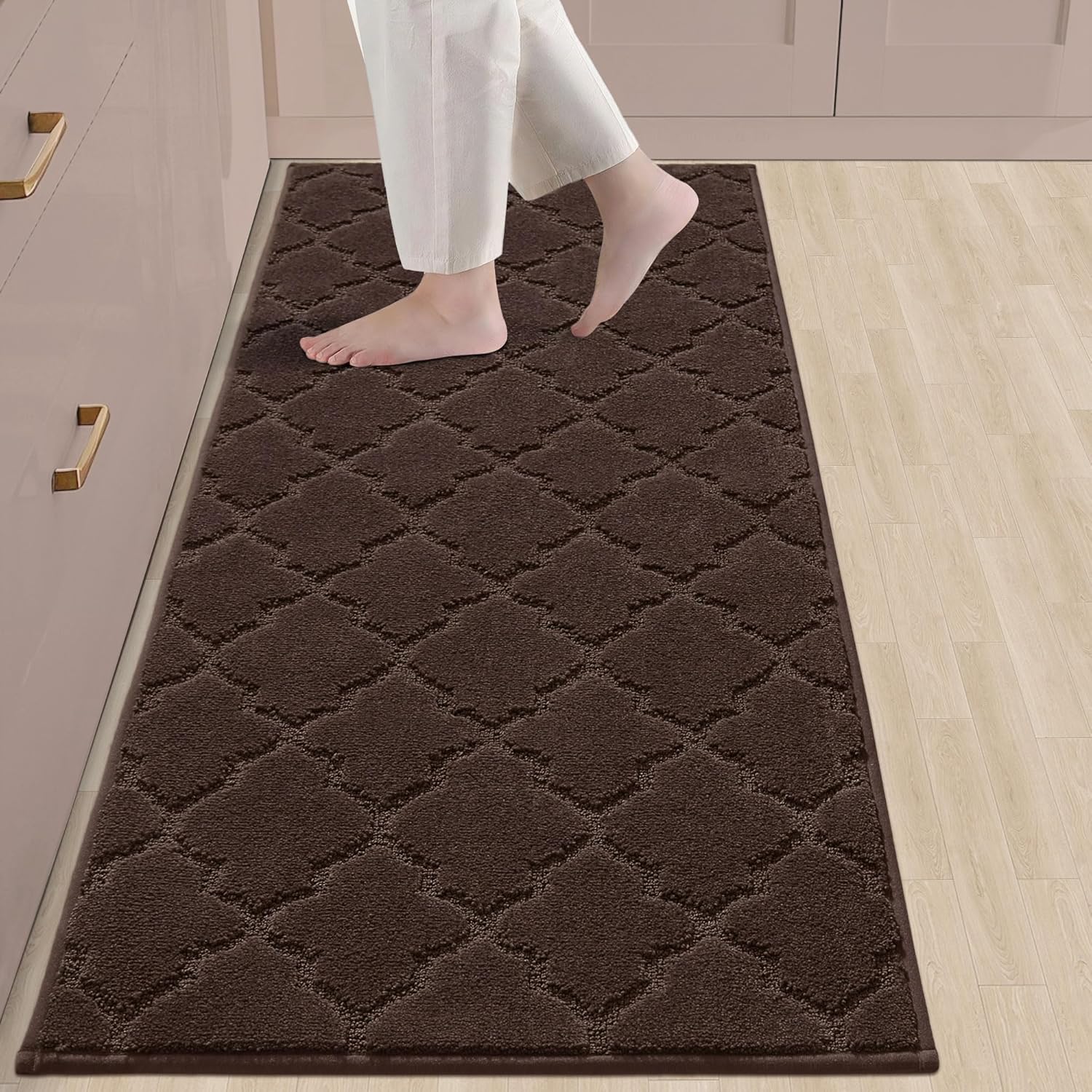 COSY HOMEER-Kitchen-Rugs-Non-Slip-Washable 24"x60" Absorbent Kitchen Runner Rug Polyester Kitchen Mats for Floor Soft Standing Floor Mats for Sink Mat,Hallway,Laundry,Brown