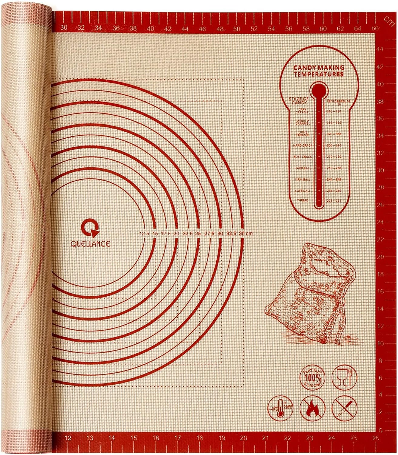 - Multi-Purpose Kitchen Baking Mat: The flexible, nonstick, and reusable silicone mat can be used as a pastry rolling mat, oven baking mat, countertop mat, table mat, and craft mat. This thick baking mats is featured both inches and centimeters measurements are available on each side of the mat for the most precise measurements, which is a every practical design