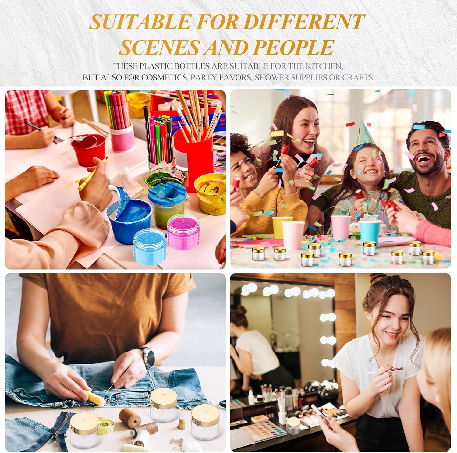 SATINIOR 6 Pack 4 oz Plastic Jars Containers with Lids Wide-mouth Refillable Leakproof Reusable Round Empty Jars for Travel Cosmetic Dry Food Spice Cookie Candy Home Kitchen Organizing(Gold)