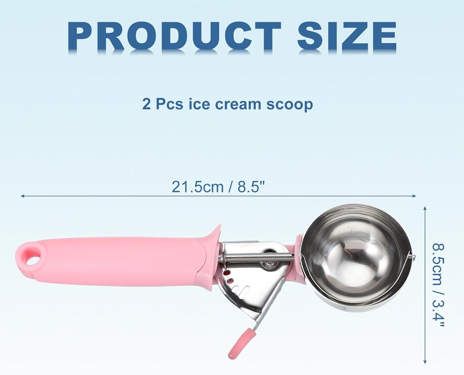 - Package Included - 2pcs x ice cream scoop; Length: 21.5 cm/8.5 inch; Width: 8.5 cm/3.4 inch; Great for housewarming gifts, holiday gifts.