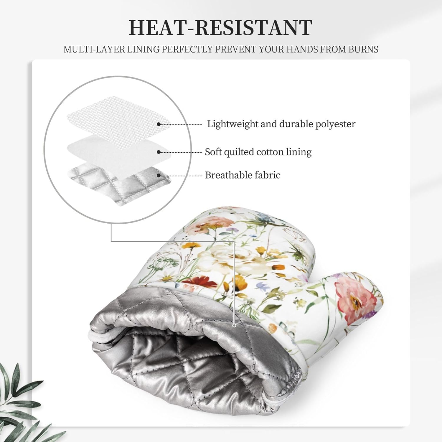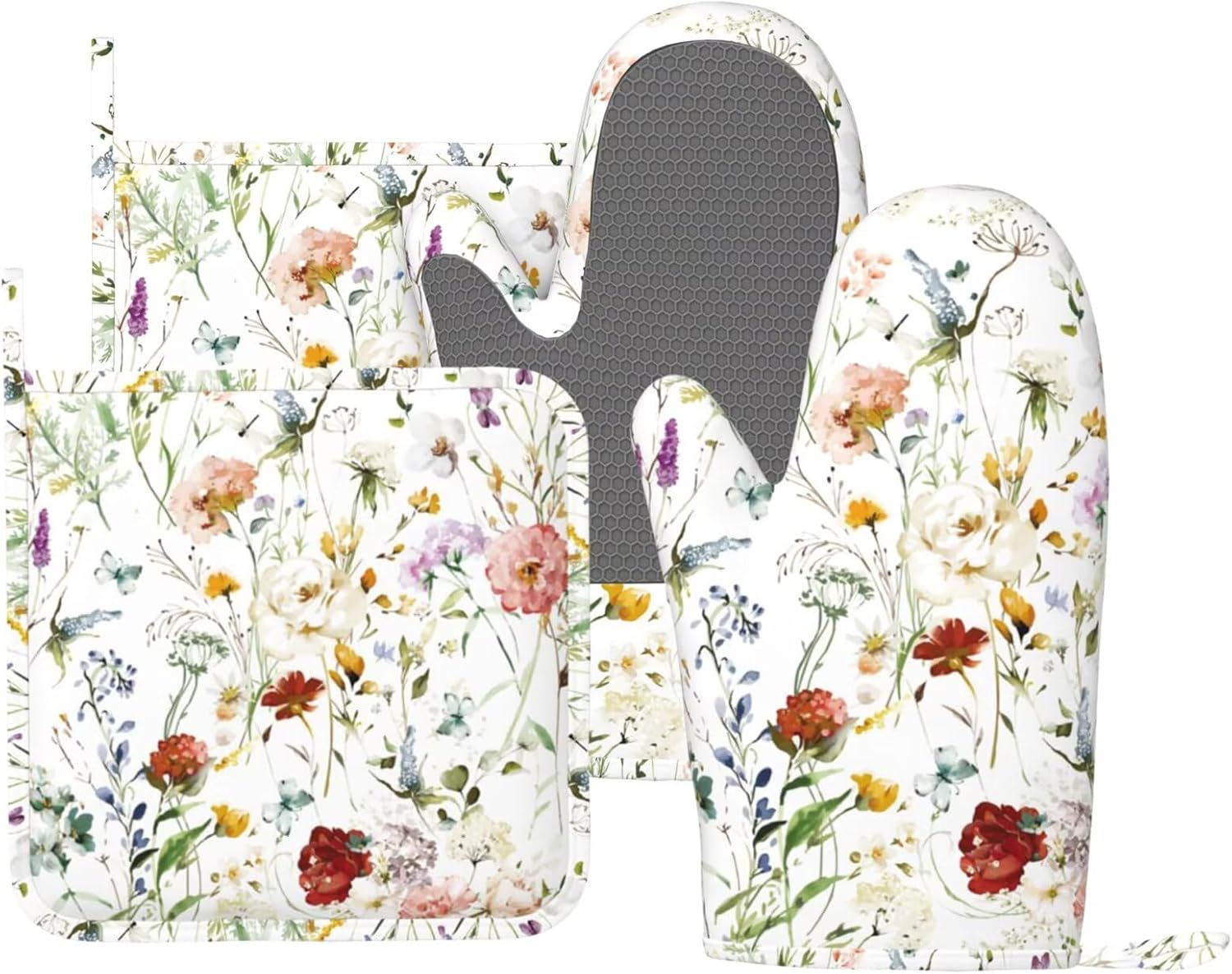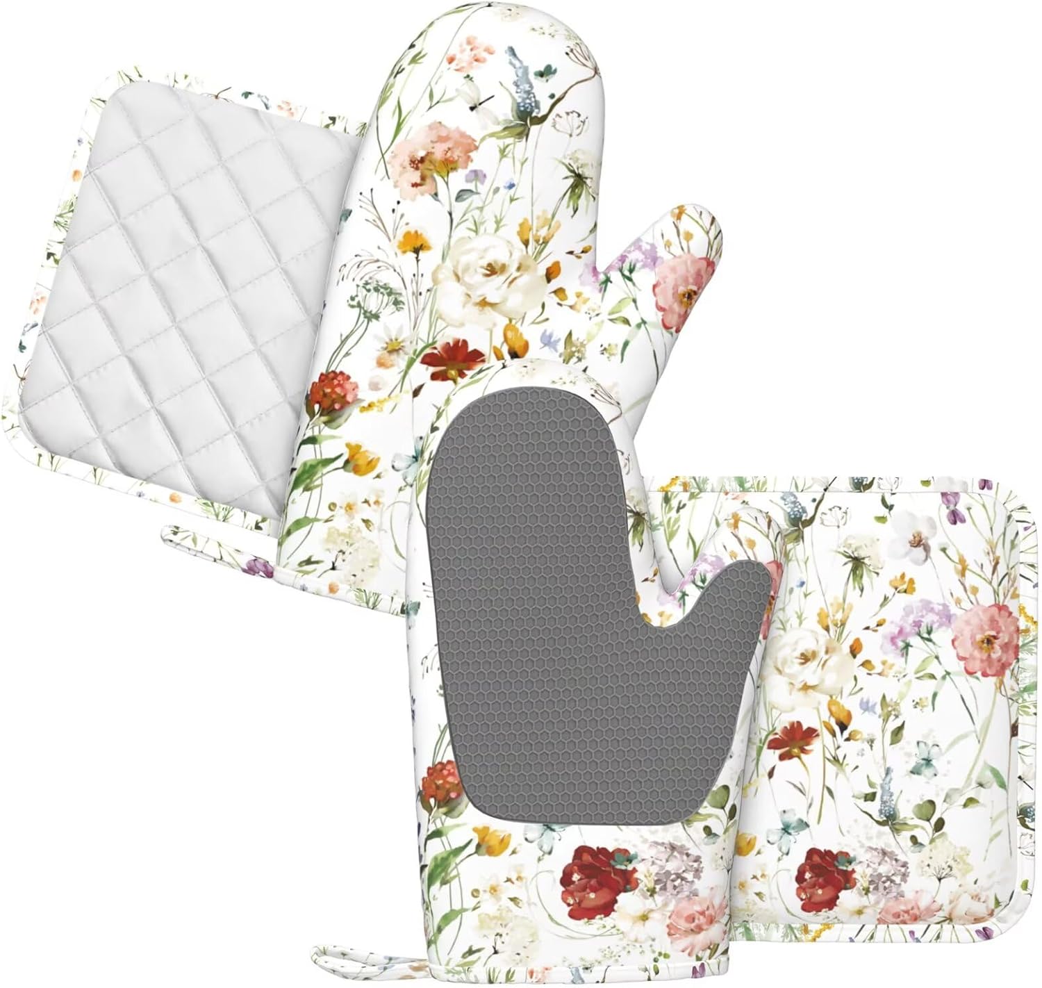 - HEAT RESISTANT: The wildflower flower floral silicone oven mitts and non-slip pot holders set are heat resistant at 392 F/200 C because of their durable construction so they can effectively keep you protected from burning while you enjoy cooking and grilling
