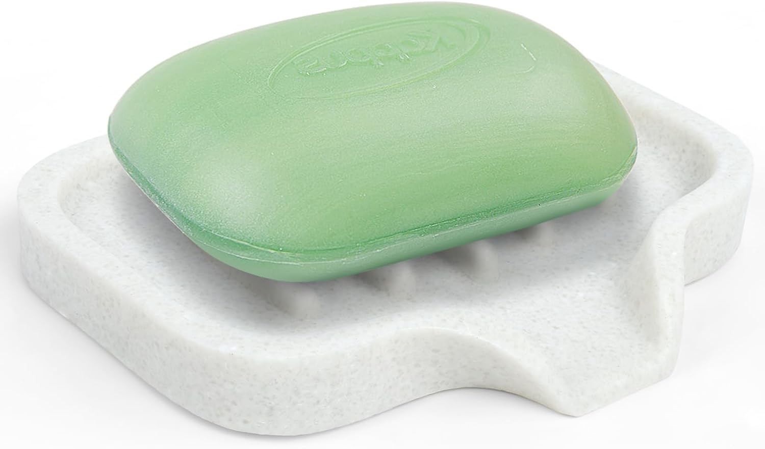 Self Draining Soap Dish- Bar Soap Holder for Shower, Marble Design Large Soap Savers Soap Tray Sponge Holder for Kitchen Bathroom Bathtub Sink, Crystal White