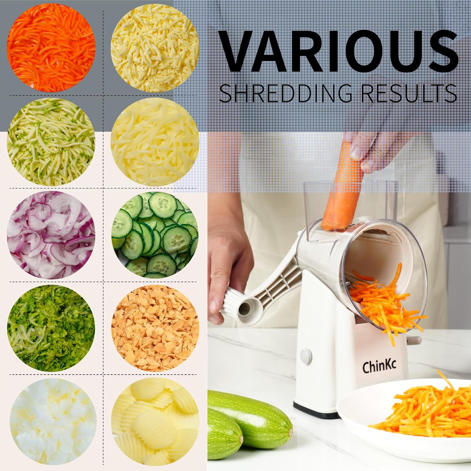 - ๐๐๐ซ๐ฌ๐๐ญ๐ข๐ฅ๐ ๐-๐ข๐ง-๐ ๐ ๐ฎ๐ง๐๐ญ๐ข๐จ๐ง๐๐ฅ๐ข๐ญ๐ฒ: Elevate your culinary creations with our 5 in 1 rotary grater featuring 5 interchangeable blades, including precise slicing, julienne options, shredding, and weaving capabilities. From delicate julienne cuts to hearty shredding tasks, this vegetable slicer shredder offers unparalleled versatility for all your kitchen endeavors.