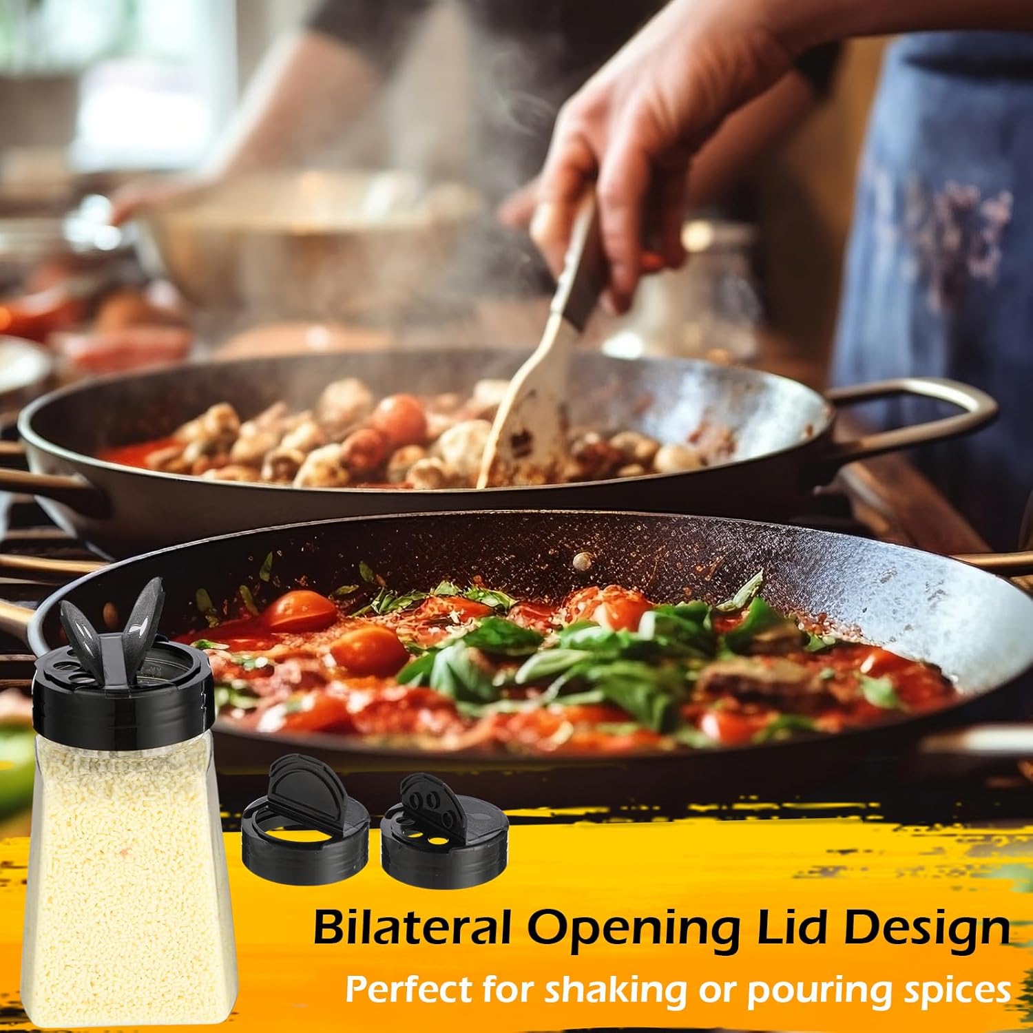 - 2 Independent Flip Lids: the flip lid design of the plastic seasoning container is smart and thoughtful, it can meet the precise amount of cooking, you can take it as you go, you don't have to remove the lid to measure the spices, if you just want to sprinkle the spices, the holes on the side of the shaker are large enough to allow dried herbs to pass through