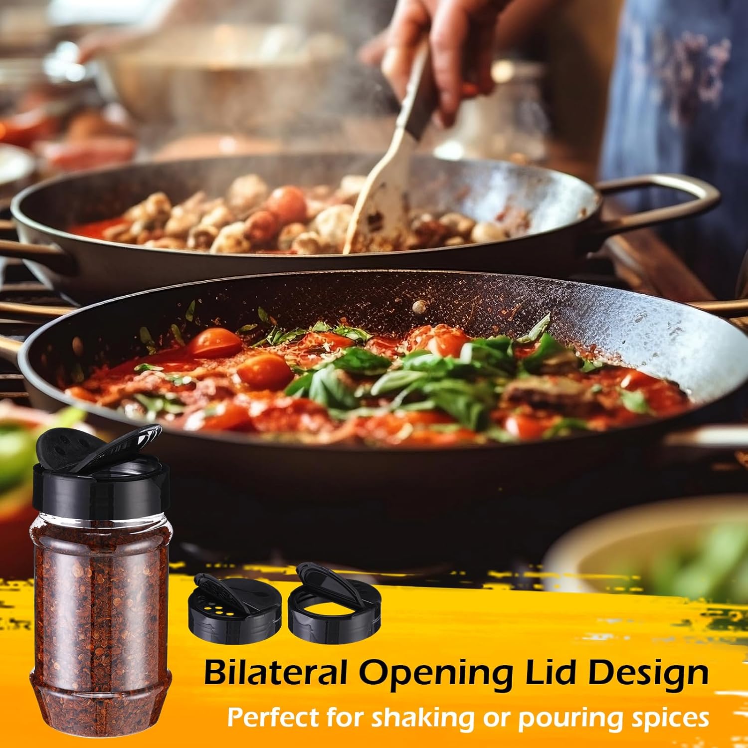 - 2 Independent Flip Lids: the flip lid design of the plastic seasoning container is smart and thoughtful, it can meet the precise amount of cooking, you can take it as you go, you don't have to remove the lid to measure the spices, if you just want to sprinkle the spices, the holes on the side of the shaker are large enough to allow dried herbs to pass through