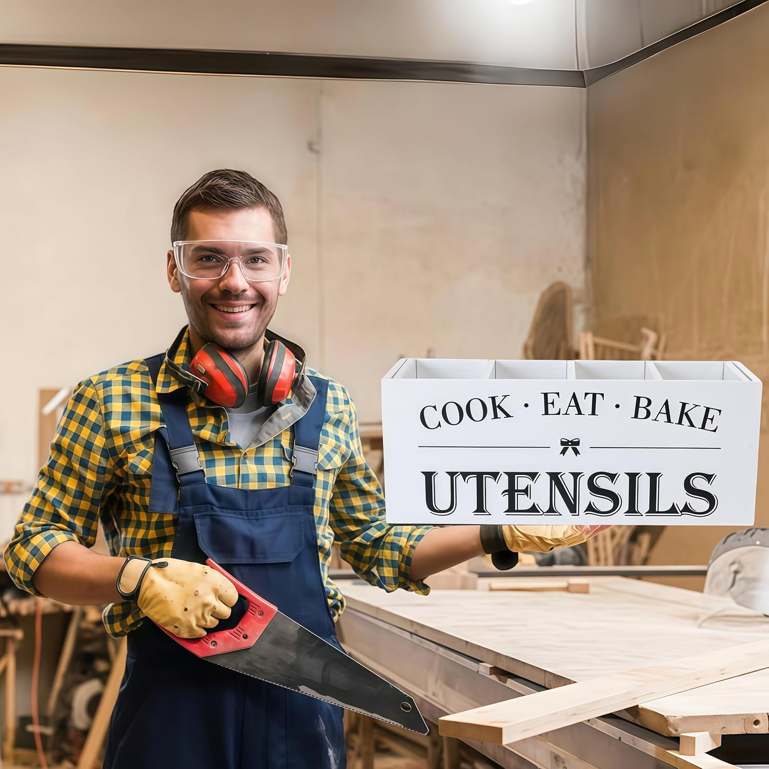- Versatile Use: The versatility of our wooden utensil holder makes it perfect for a multitude of settings. Use it in the kitchen to keep your cooking tools organized, on the dining table to hold condiments and napkin rings, or even in the office to store pens, scissors, and other desk essentials. Its sleek, neutral aesthetic ensures it blends seamlessly into any environment.