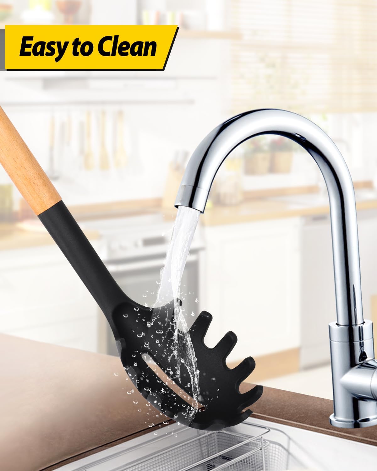 - More Safe and Healthy : Our kitchen utensils are made of food-grade silicone, free of BPA;Even at high temperatures, there is no need to worry about melting or deforming;And the soft silicone head won't scratch the coating, it can better protect your pot