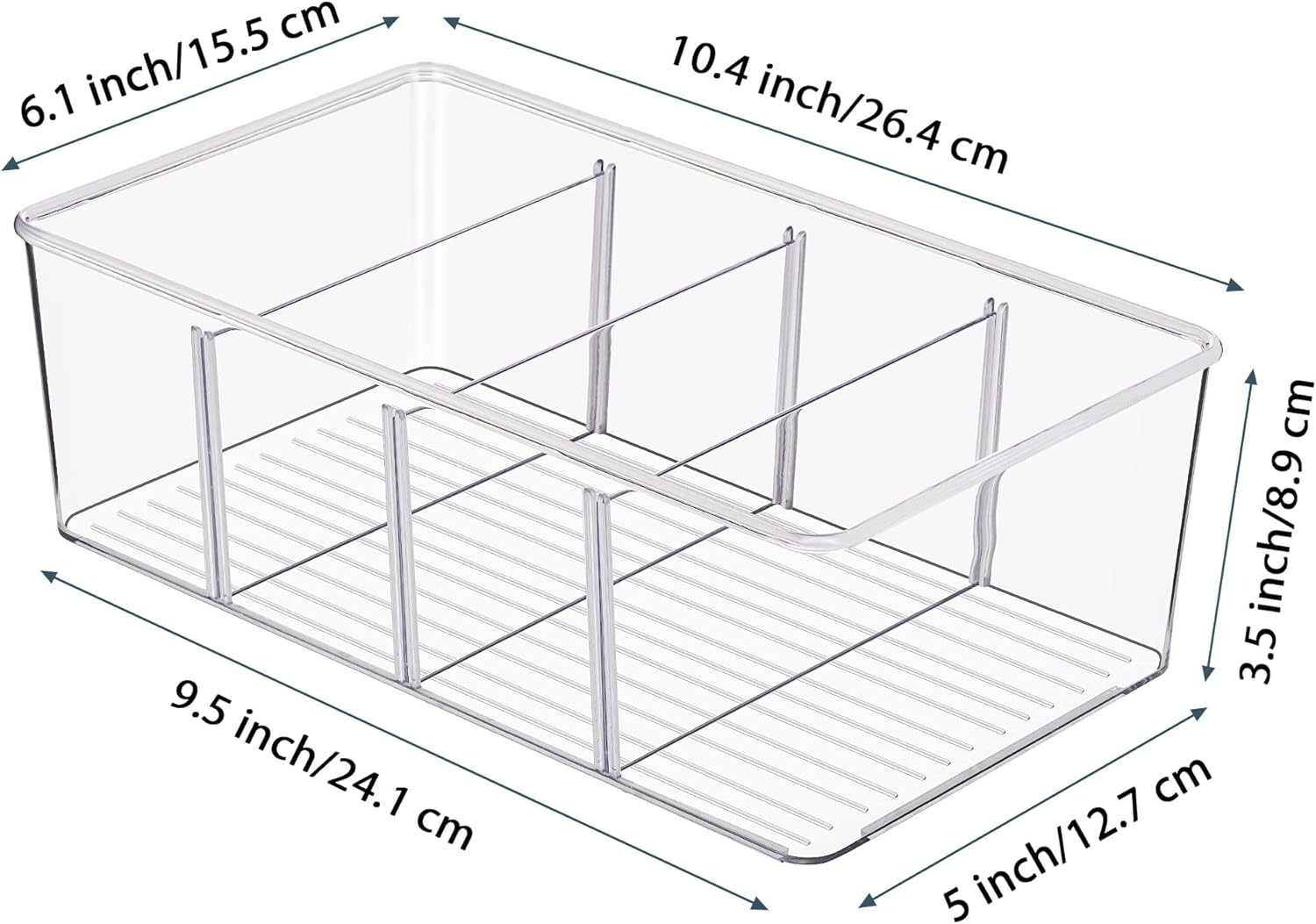 - Removable Dividers β There are 3 removable dividers in each food storage organizer bin, making it easy to separate and organize your items, you can quickly see and grab what you need.