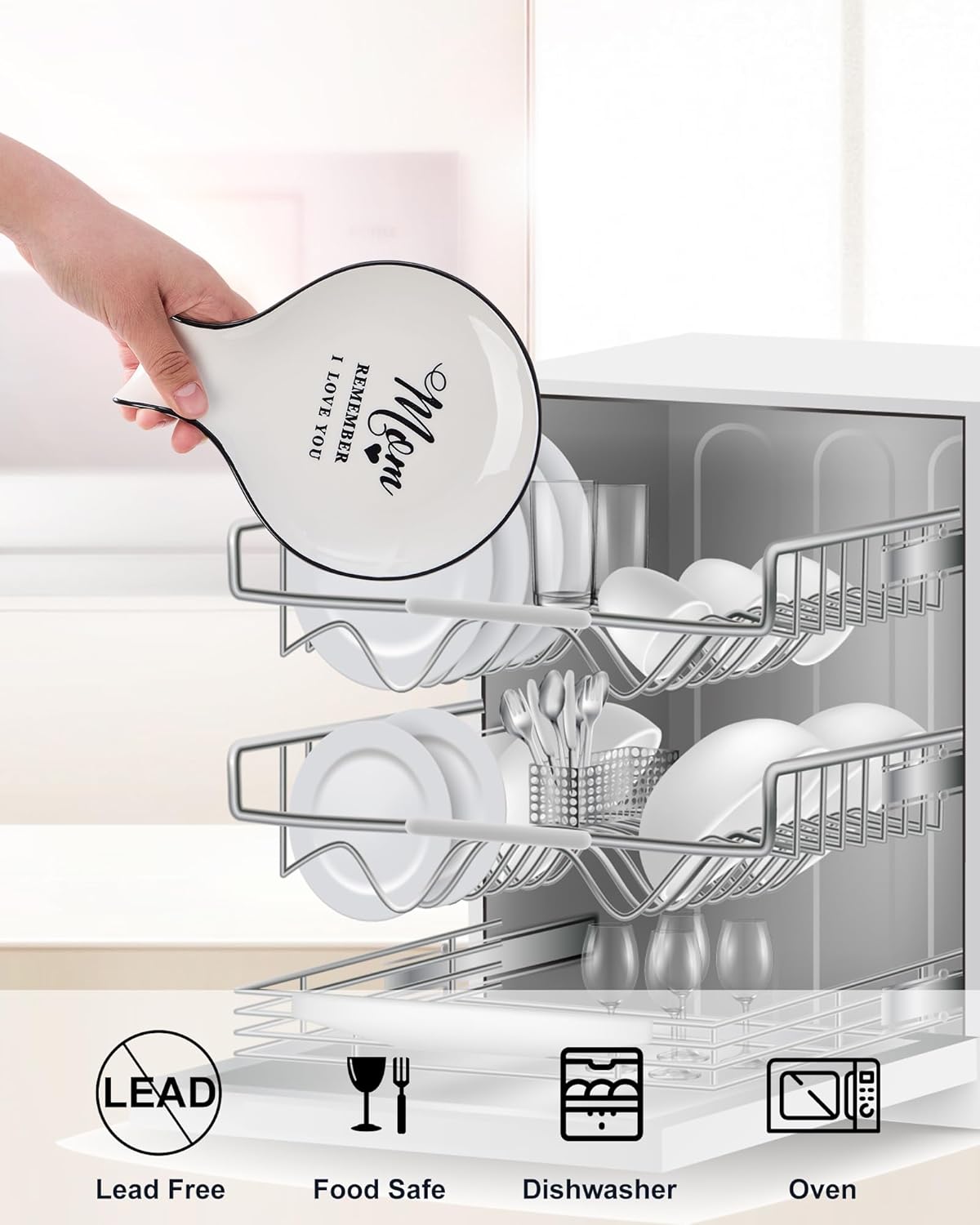 - THE WARMEST GIFT: Every meal comes from mom's love, mom is great, if you can't be with her every day, this spoon rest full of love will help you accompany her. Whenever mom is busy in the kitchen, when she sees this spoon holder, she will think of the kids who love her too.This spoon rest will be a perfect hoilday gift for mom. Housewarming, birthday, Mother's Day, Wedding anniversary,Chrismas Day...