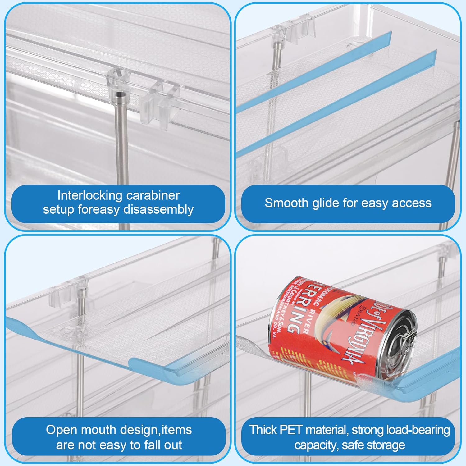 - 4️⃣【Flexible DIY Stackable】The can organizer for fridge can be stacked as you like. You can adjust the height or width (i.e. change the columns or layers). The flexible combinationkitchen soda organizer can meet your needs in different spaces. At the same time, you can split it and put half in the snack cabinet and half in the refrigerator