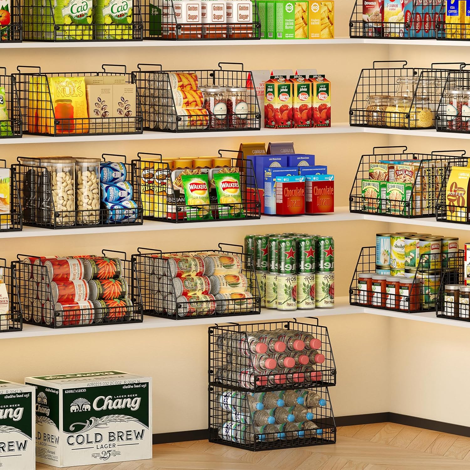 - 【Stackable Wire Baskets】Each basket in this 3-pack stackable wire basket set can be used individually or stacked to maximize space on your kitchen countertop, inside cabinets, or in the pantry. With an open-front design, these storage bins allow for quick visibility and access to your onions, potatoes, vegetables, fruits, or snacks. A smart and flexible storage solution for any home